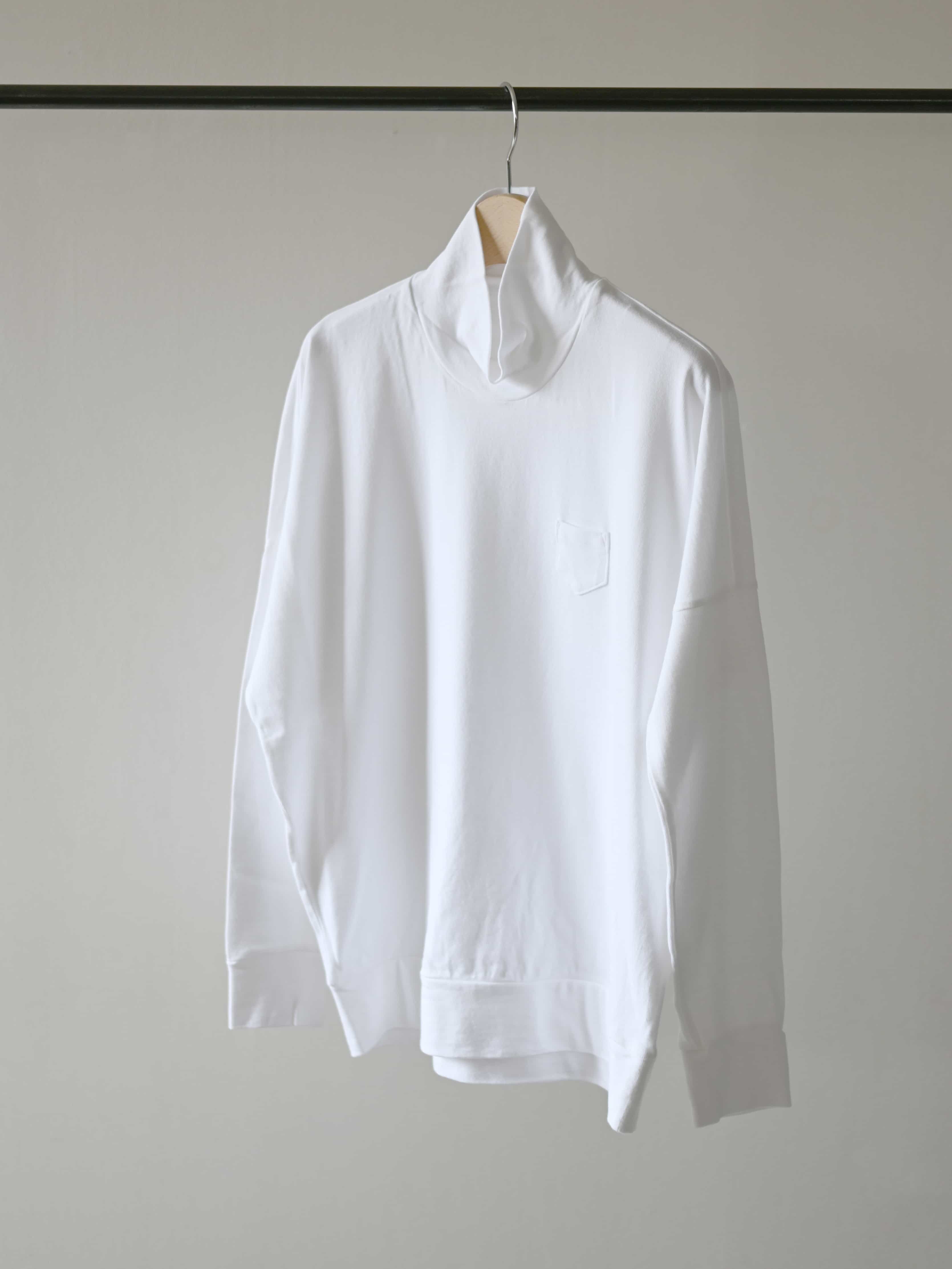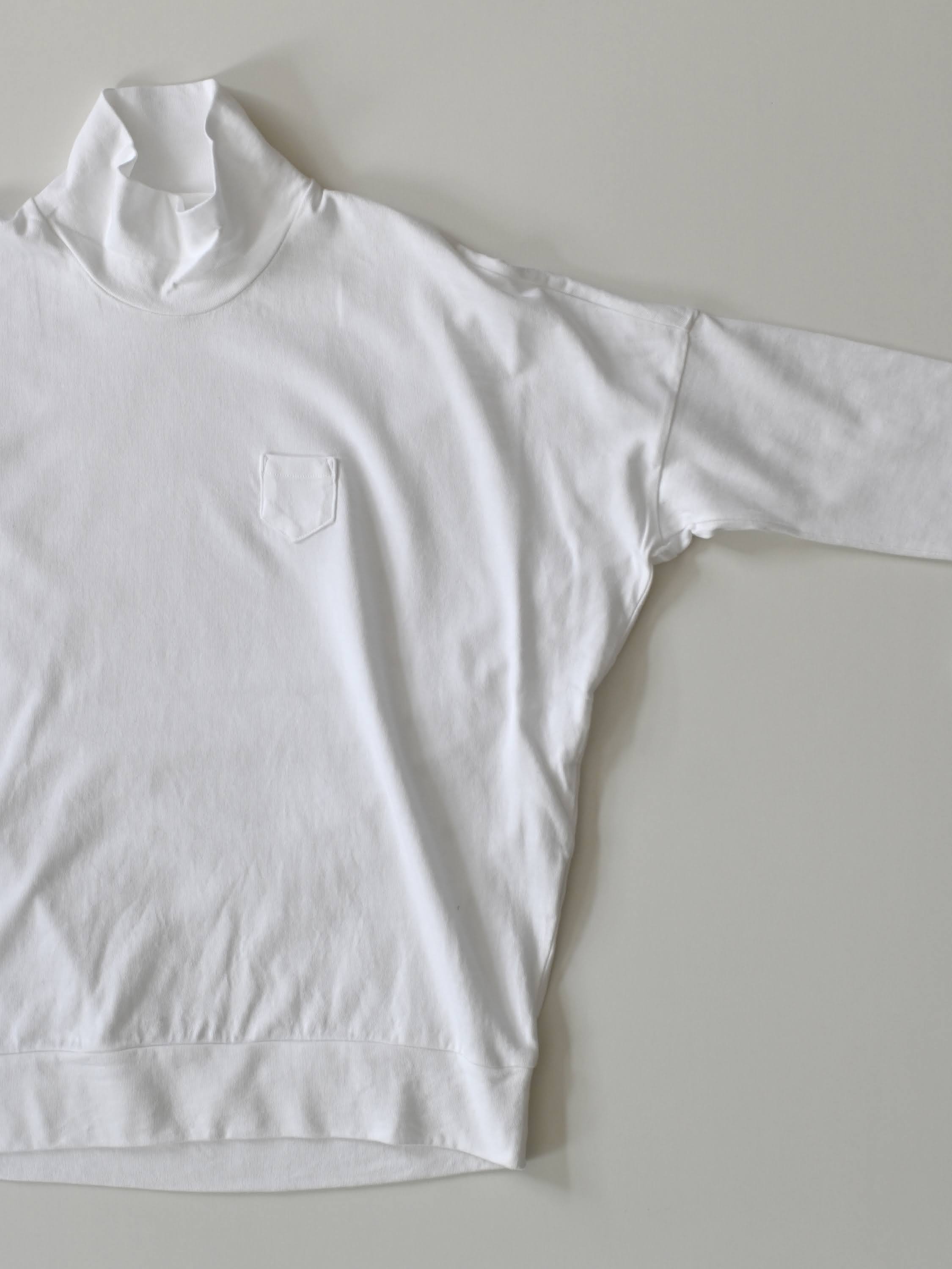 30/1リリース天竺 ハイネック長袖カットソー ワイド ホワイト