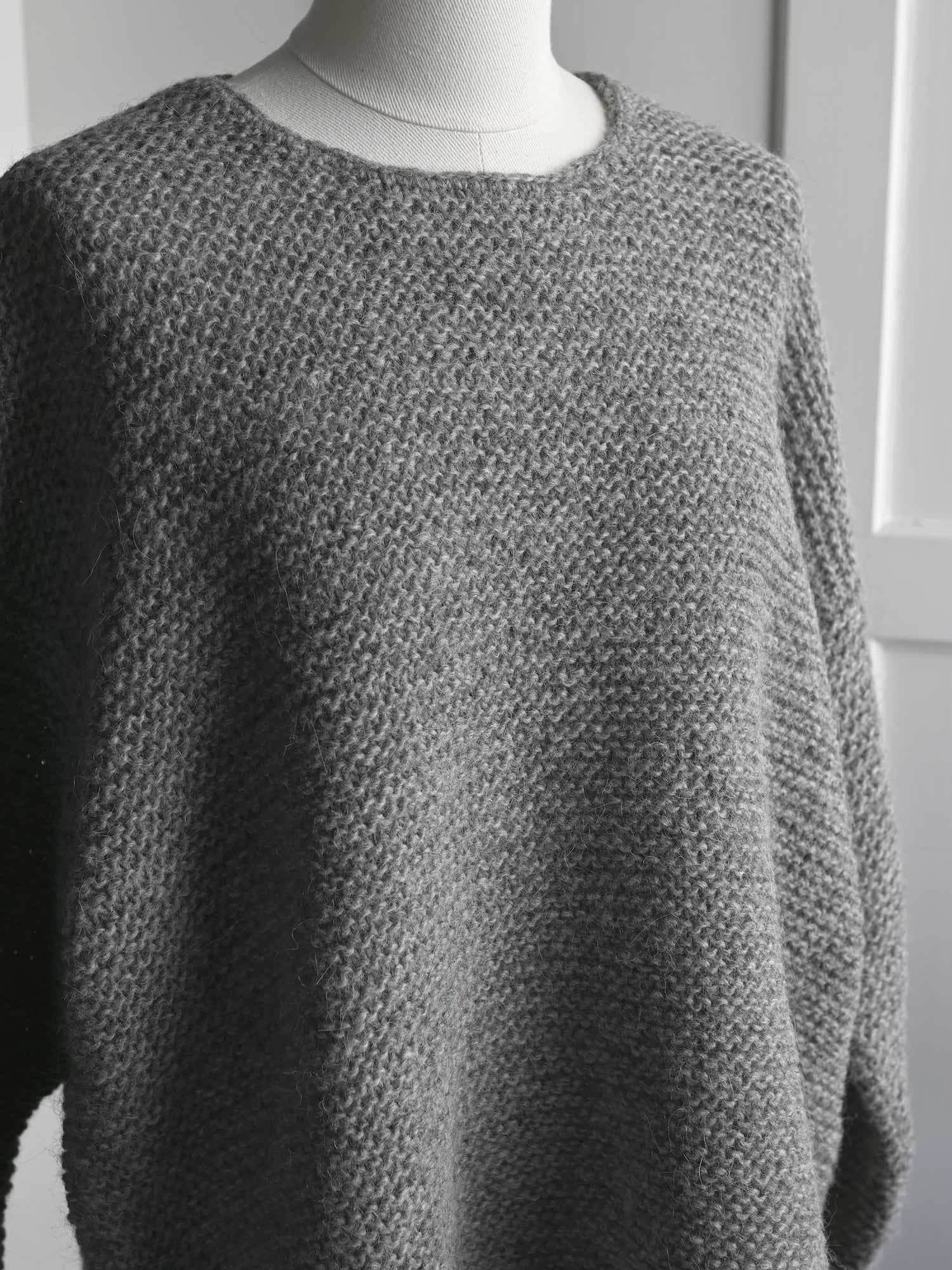 アルパカウールハンドニット ワイドクルーニット ライトグレー