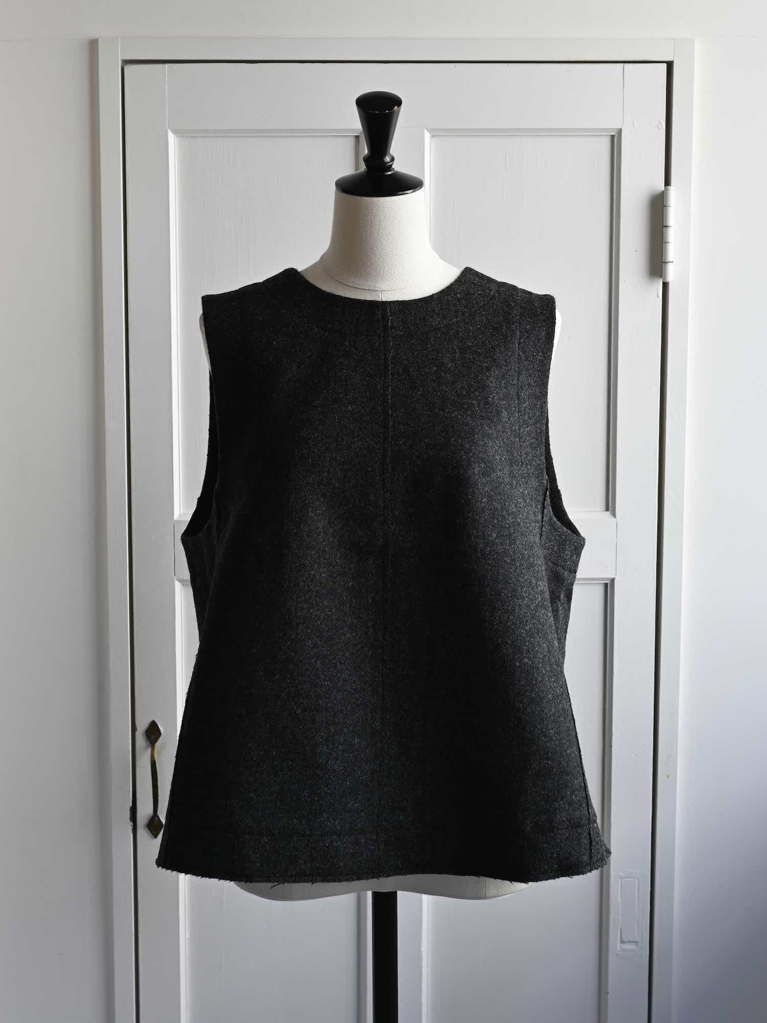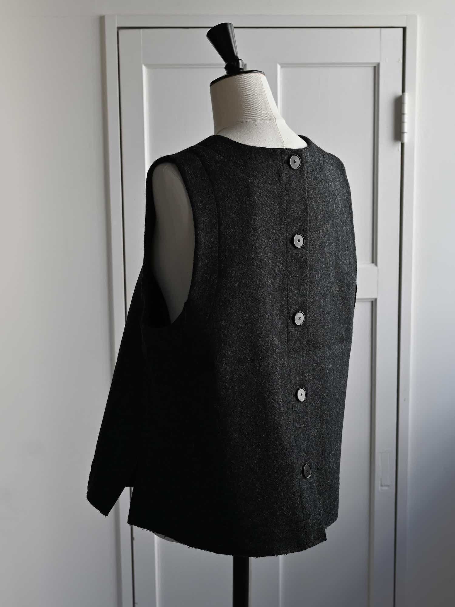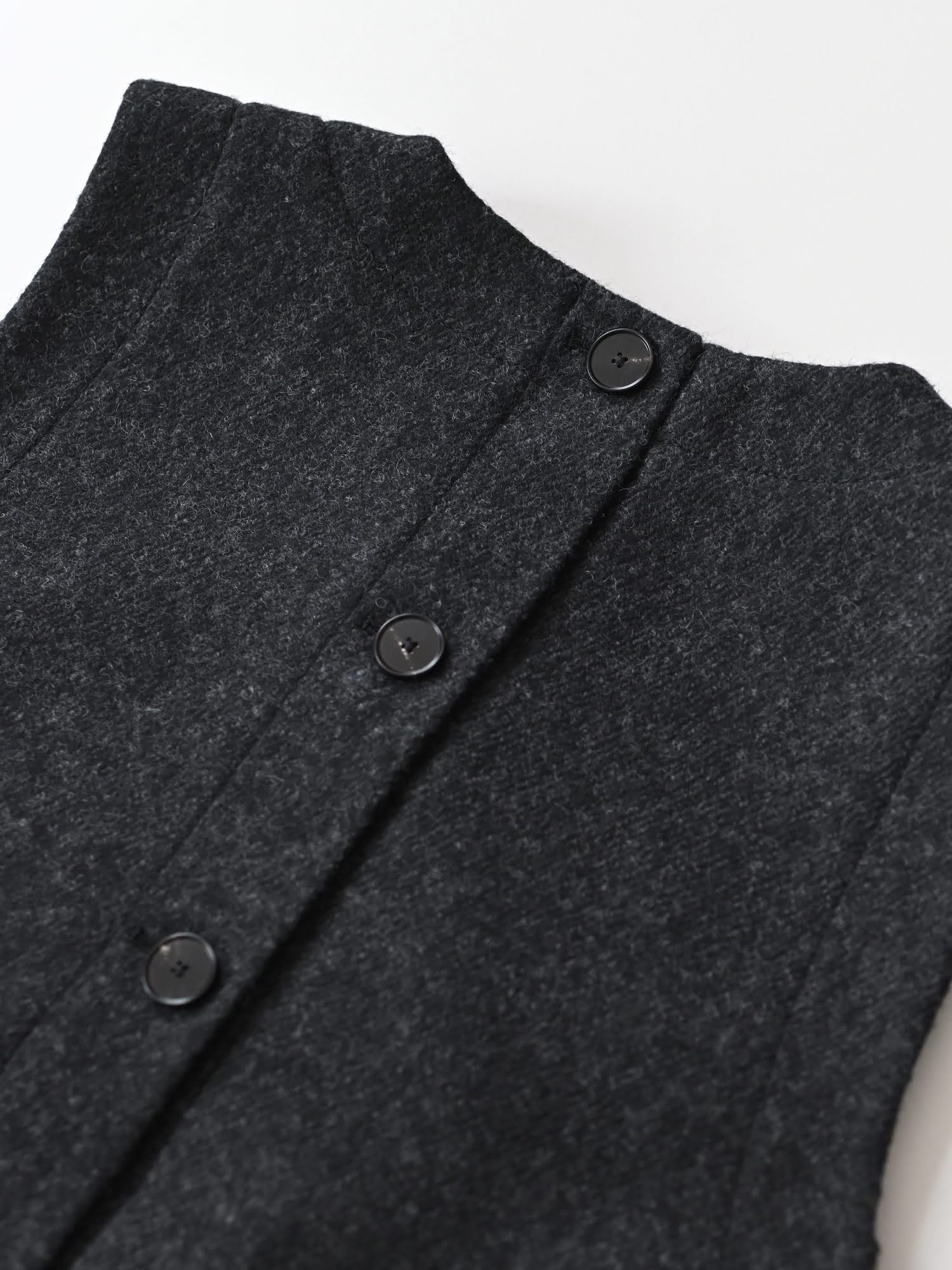 Boiled Wool Twill Button Back Top Charcoal