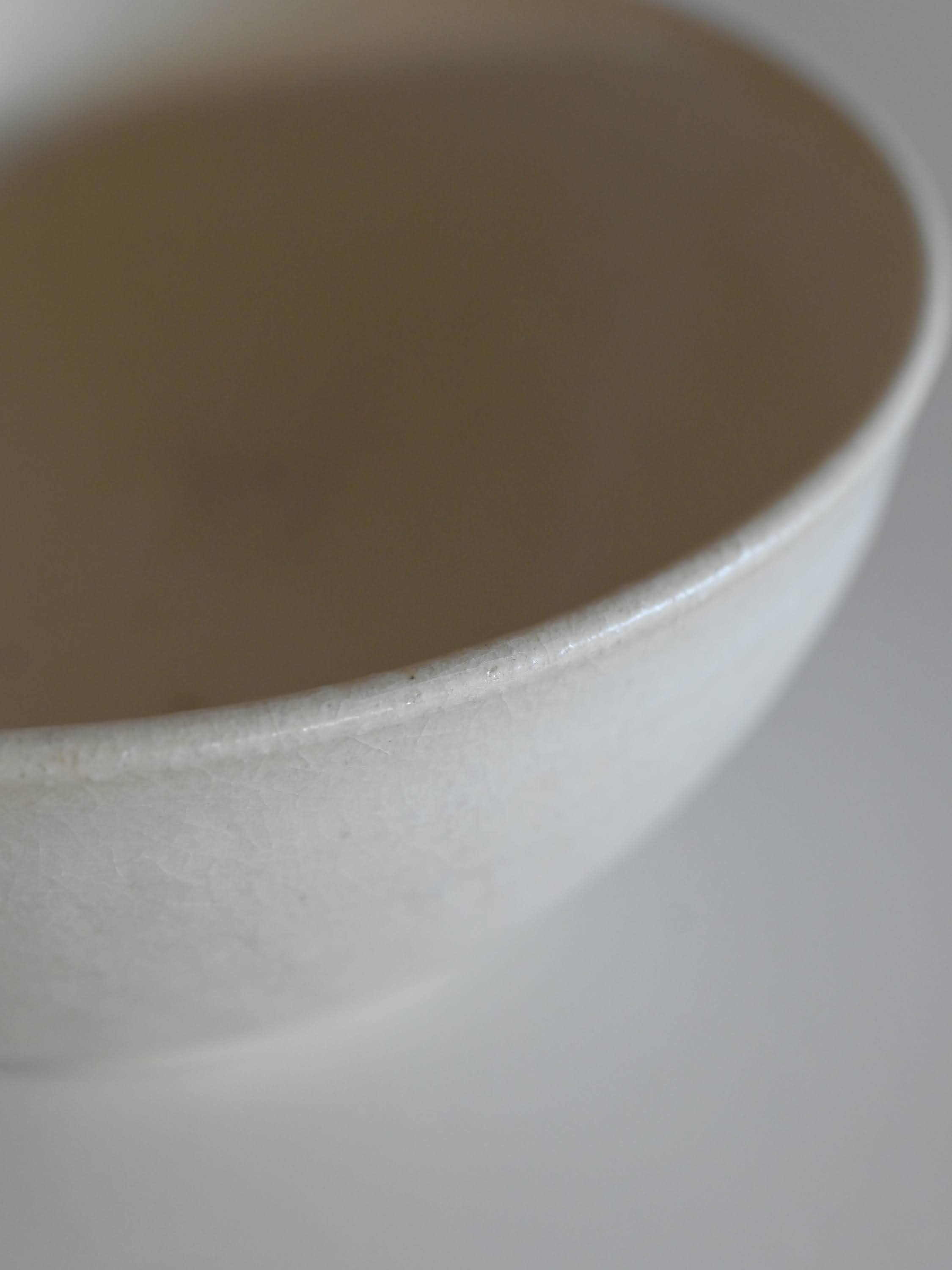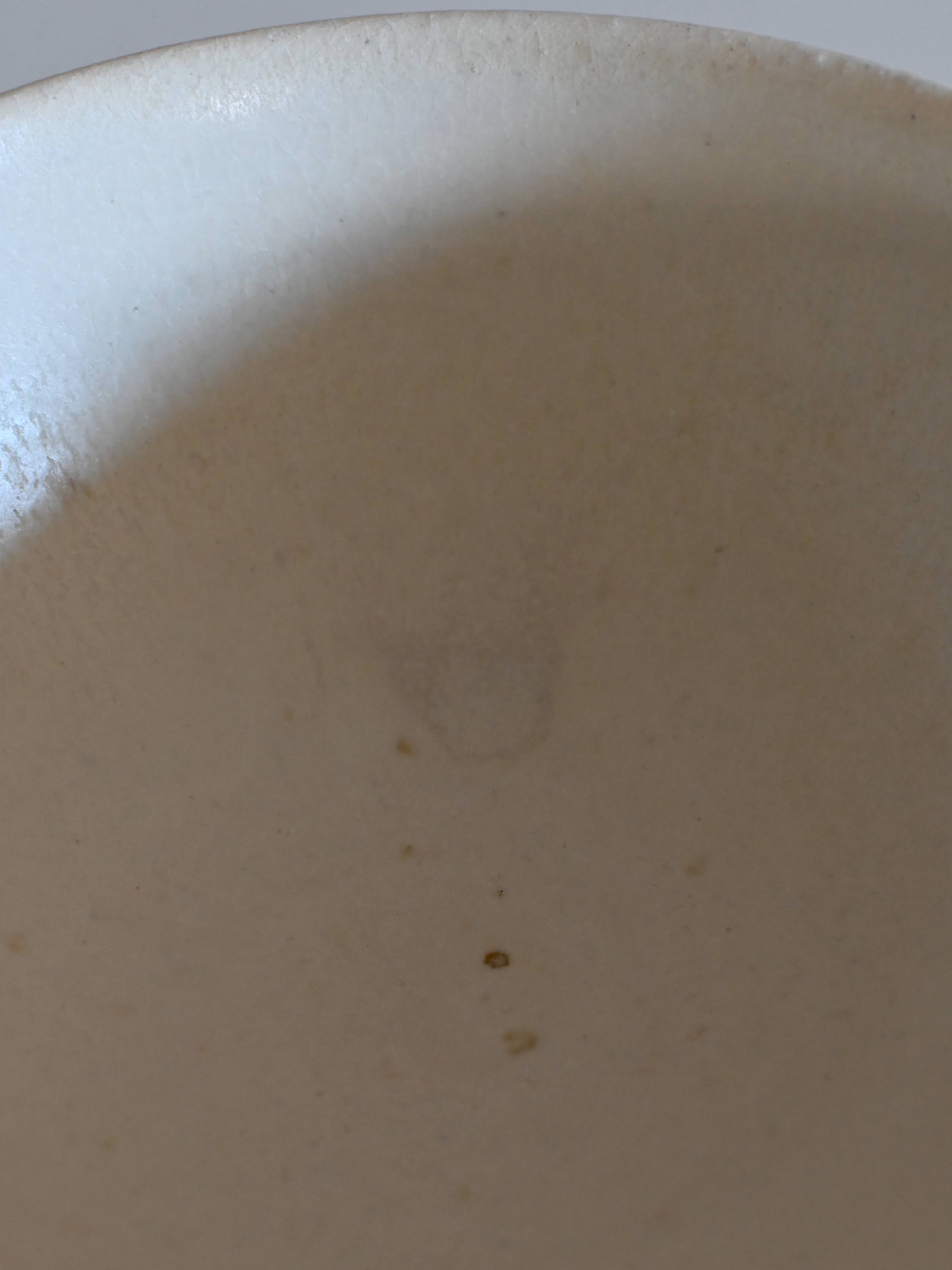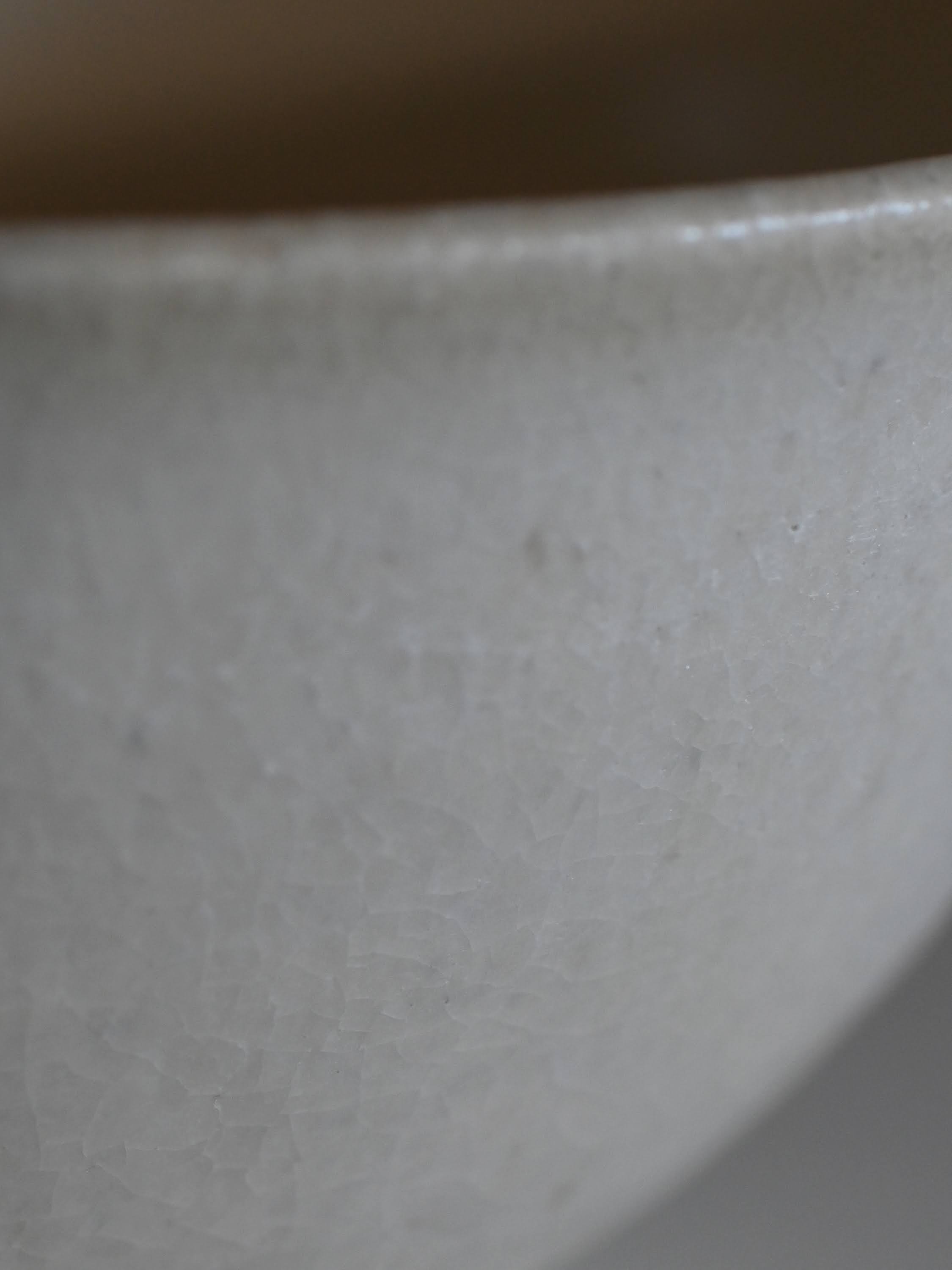 陶器は吸水性があり表面の釉には貫入(細かいひび)が入っています。このため、珈琲やお茶などを入れ使用していくうちに貫入に色が入っていきますのでご使用前に水に浸してからお使いいただくと染み込みがゆるやかになります。