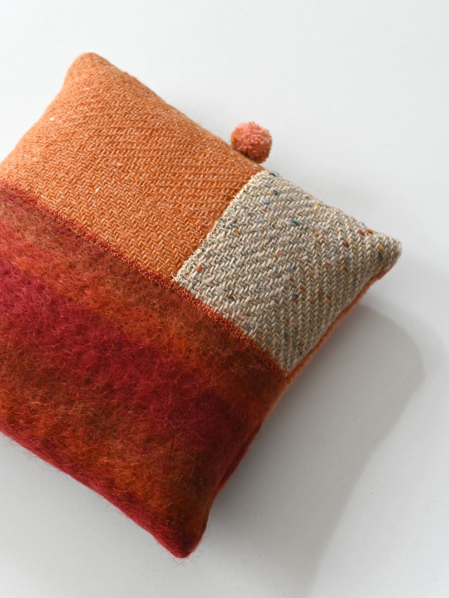 小ぶりな、手織り生地のクッションです。