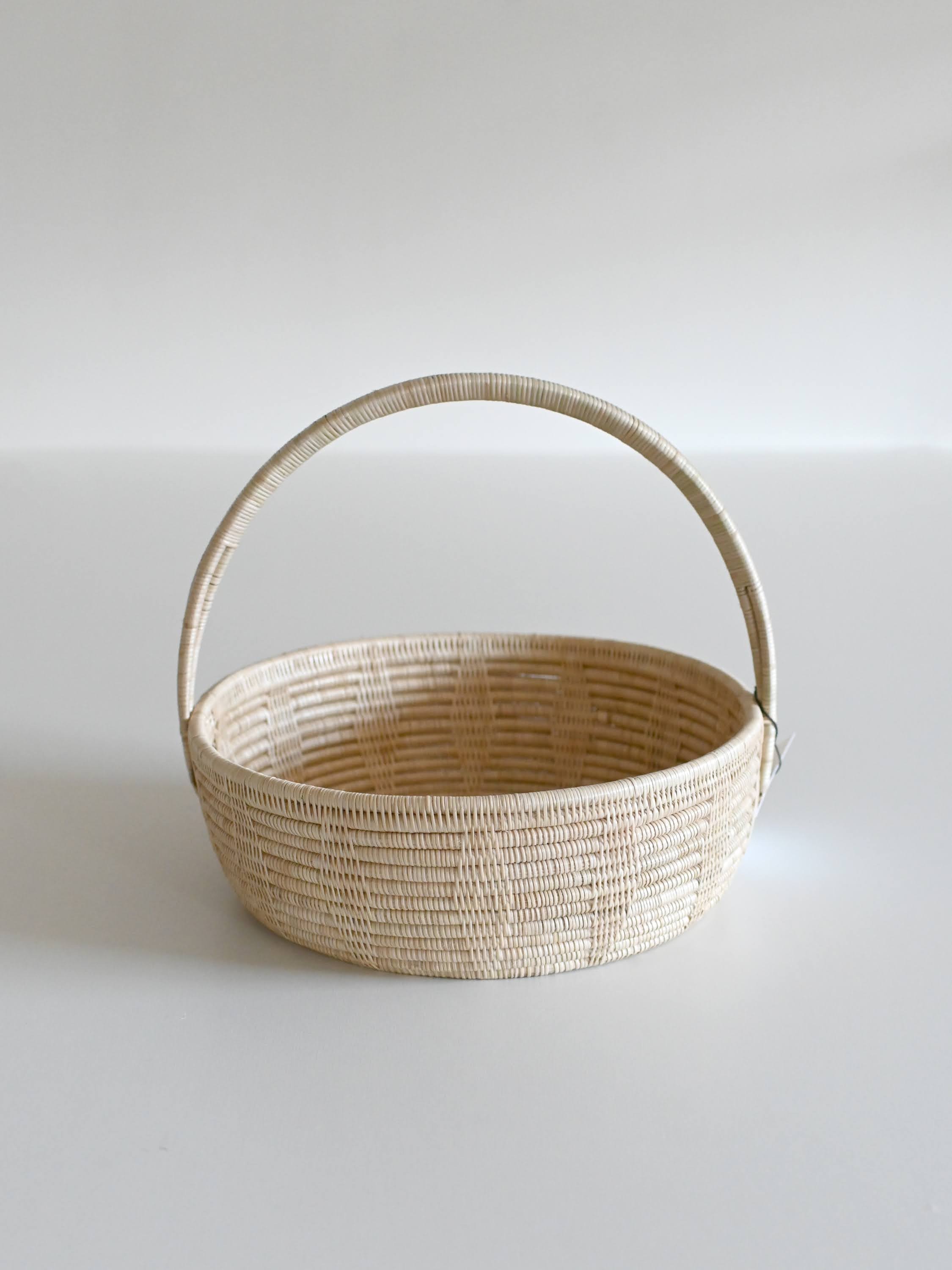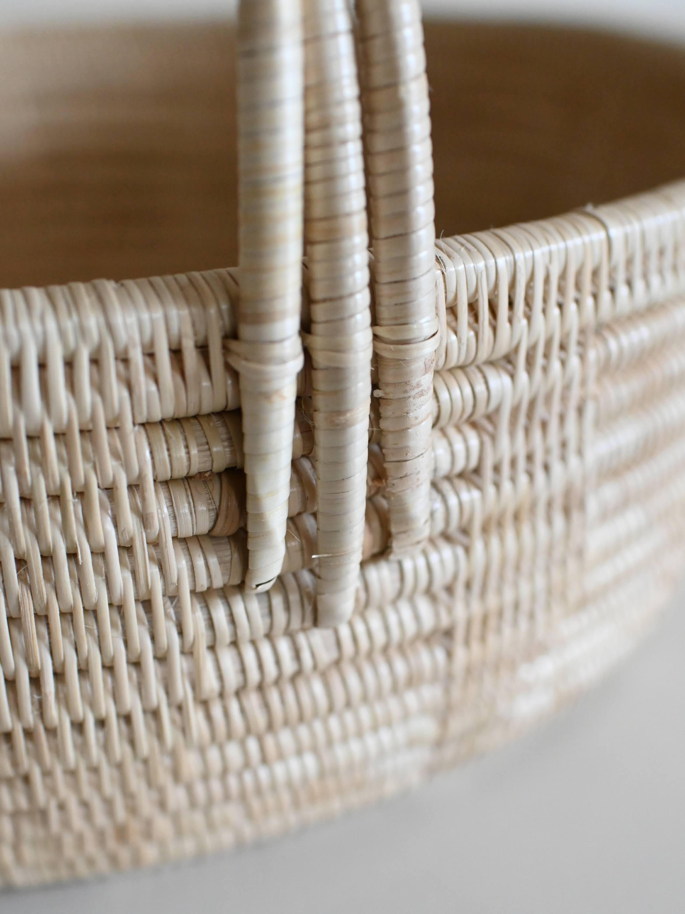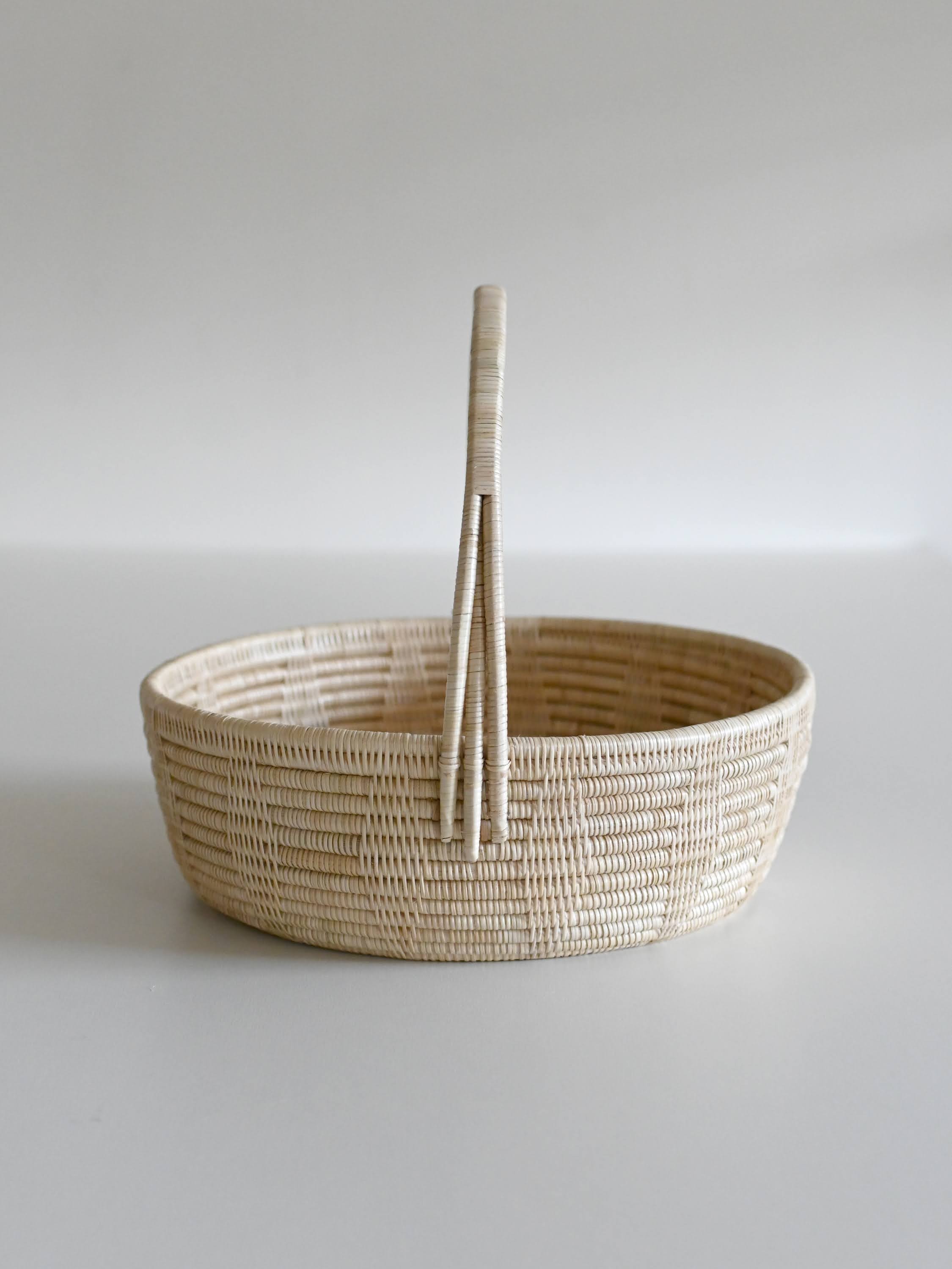持ち手付きラウンドバスケット 柄あり