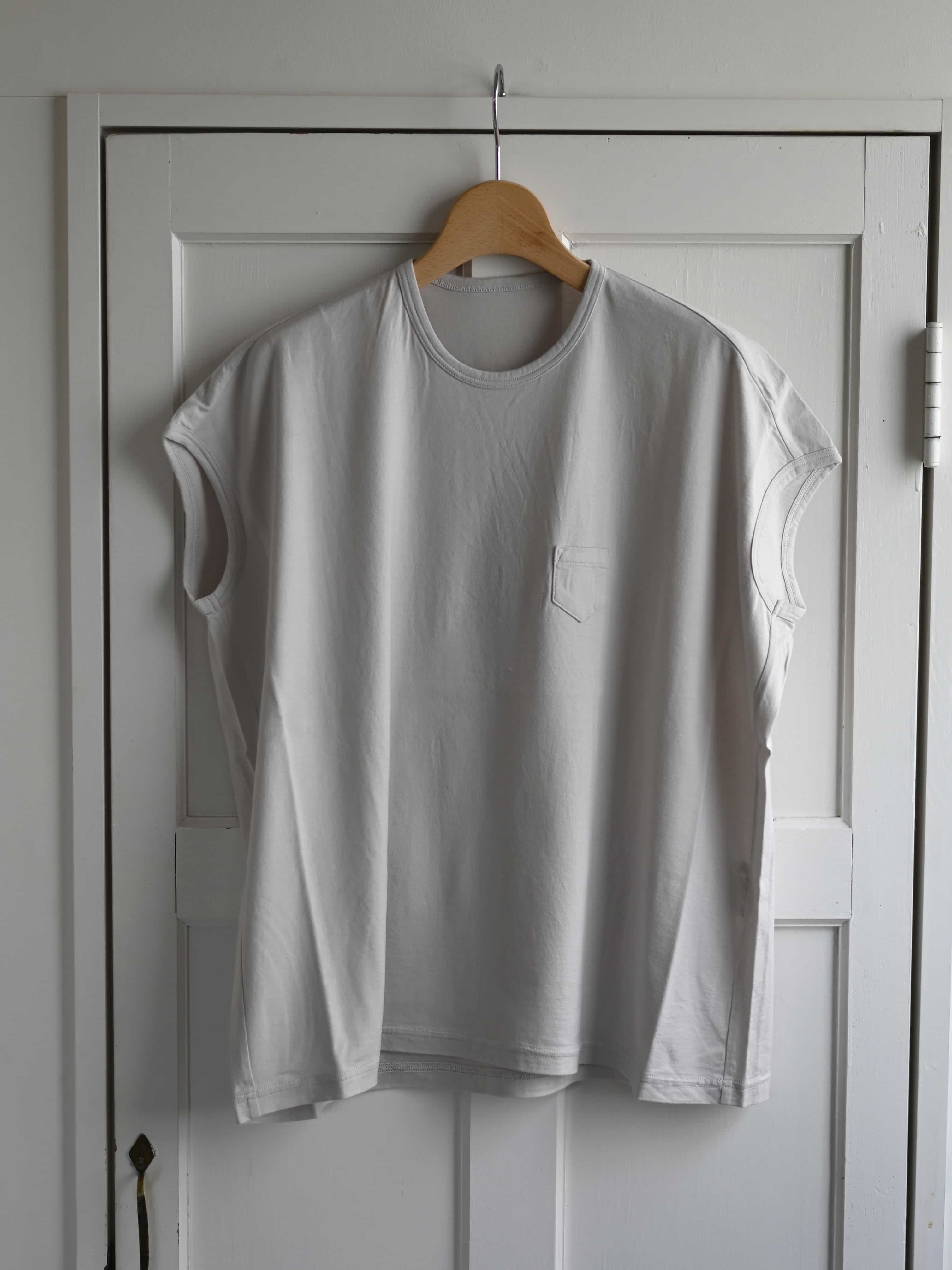 80/2コンパクト天竺 フレンチスリーブ ワイド グレーベージュ