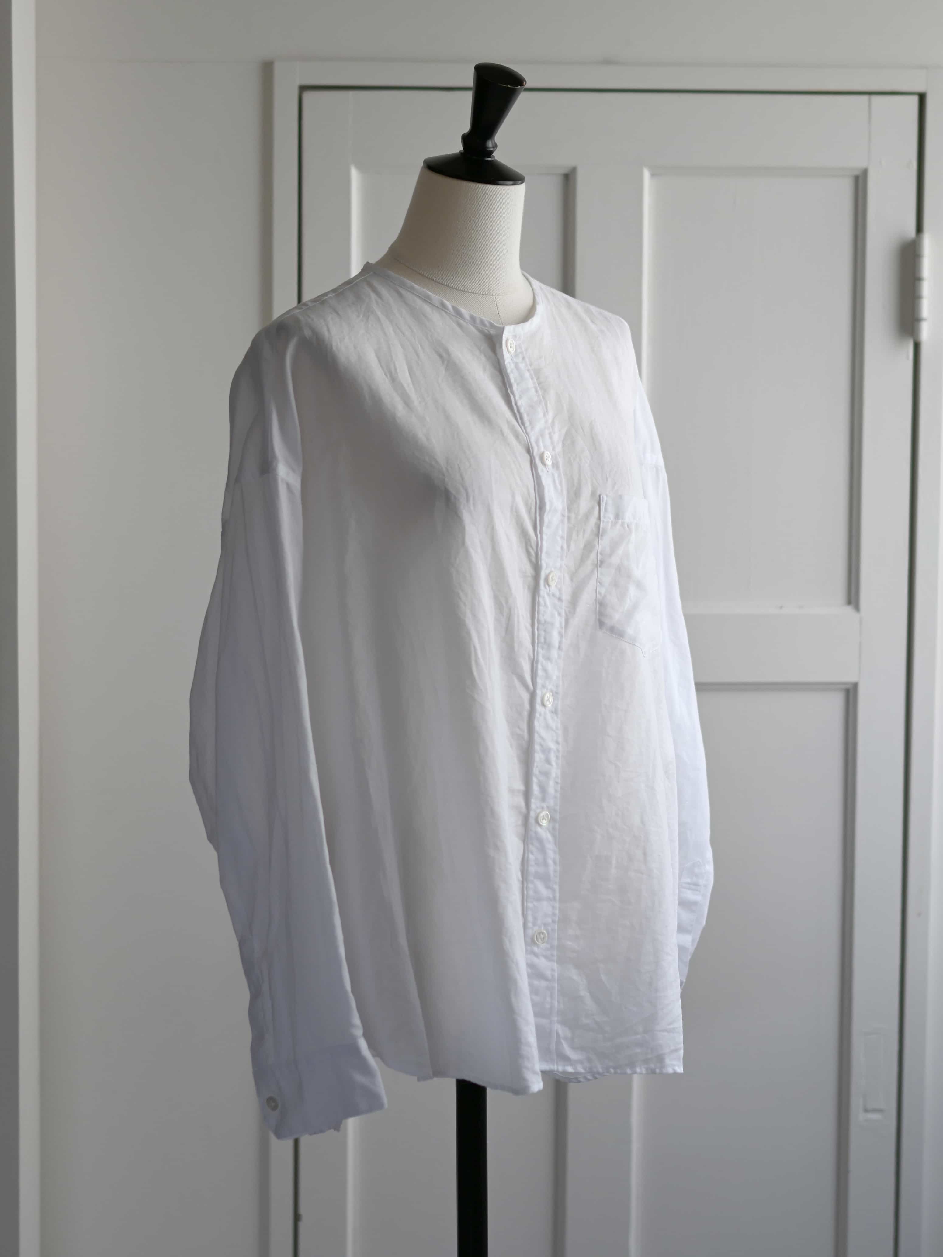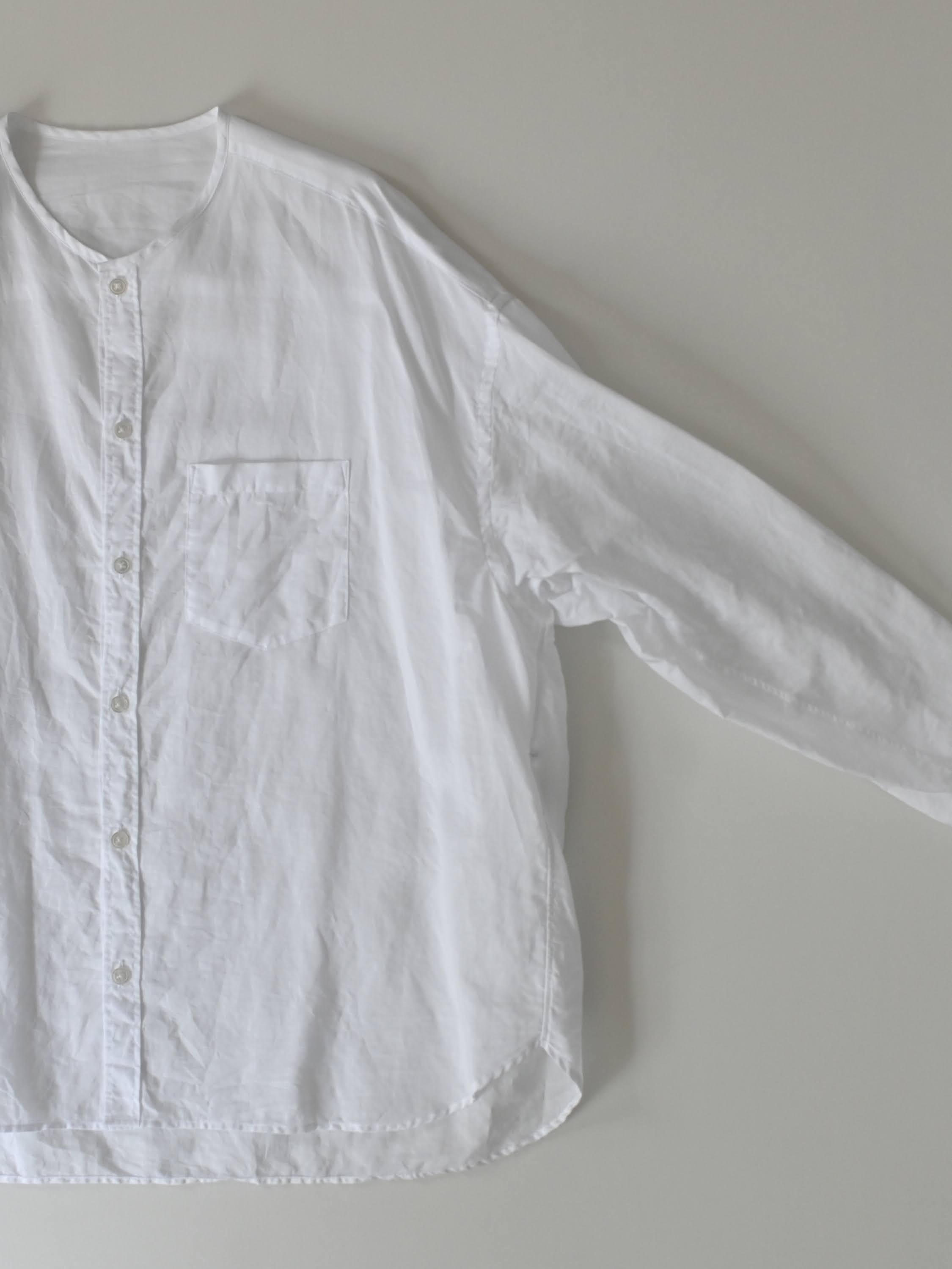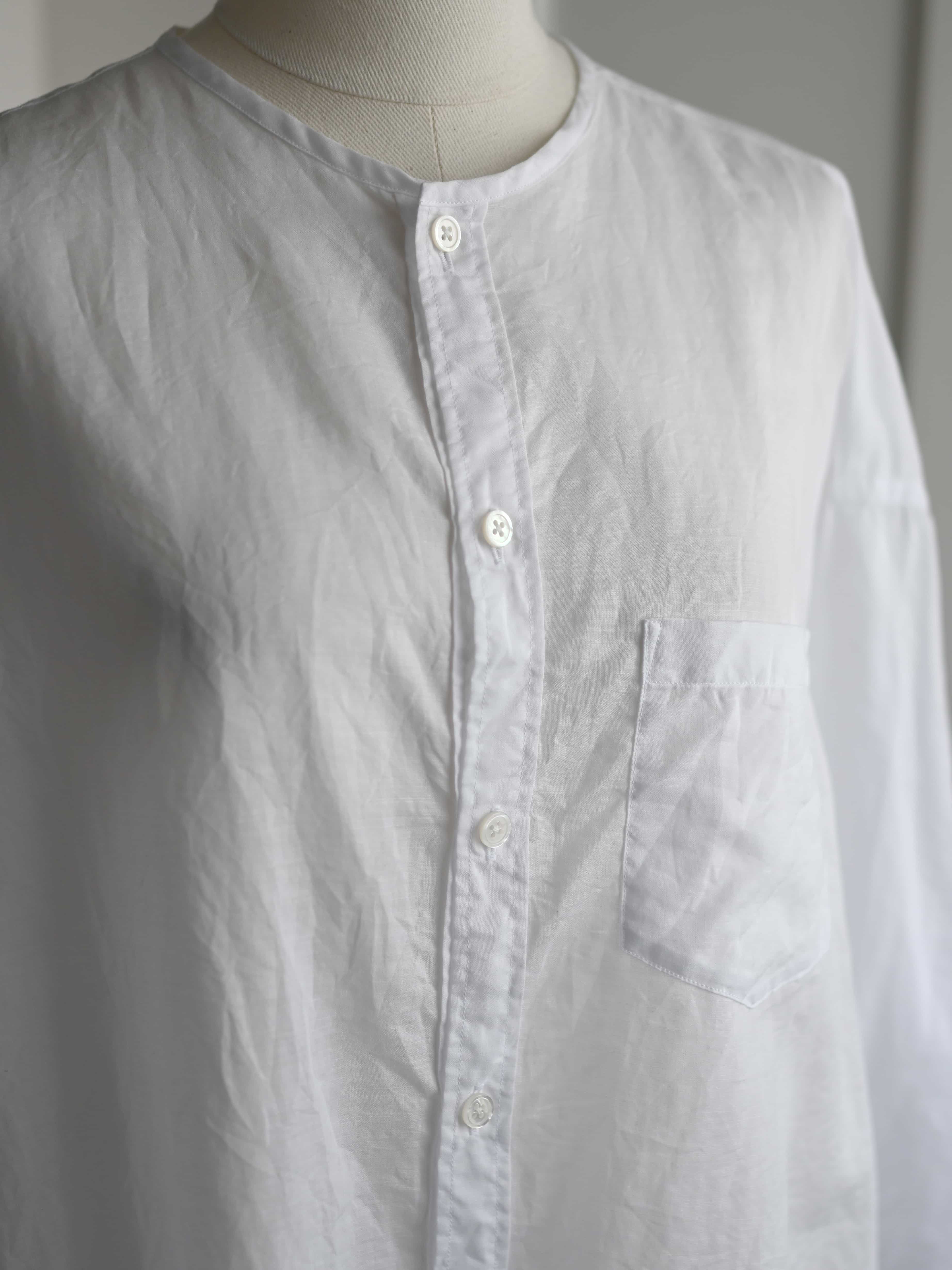 ラミーコットンローン ノーカラーブラウス ホワイト