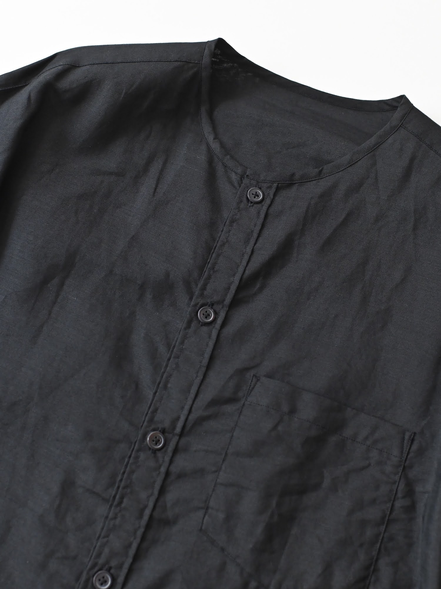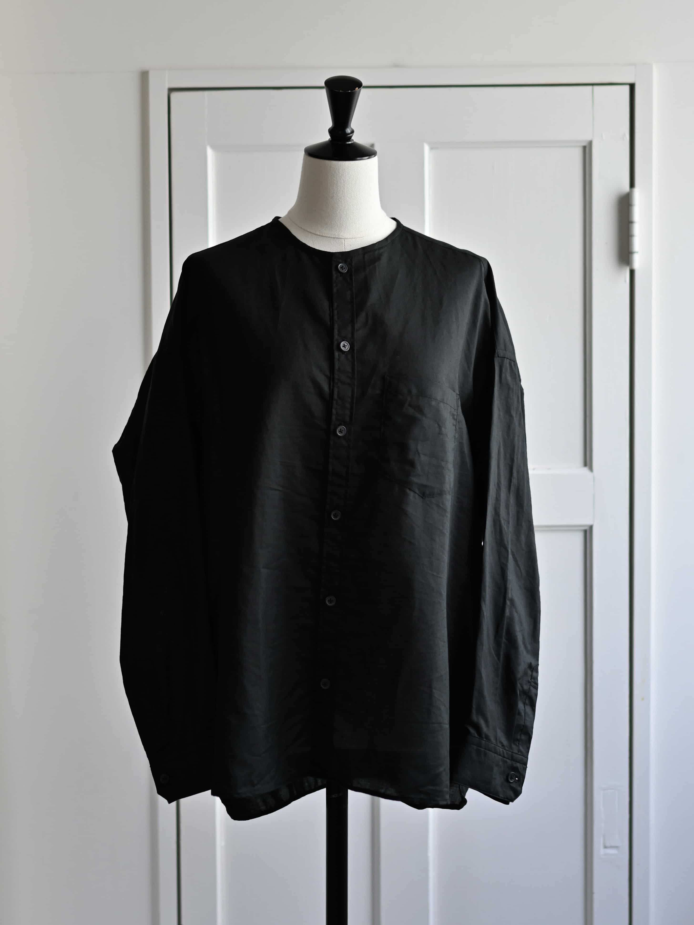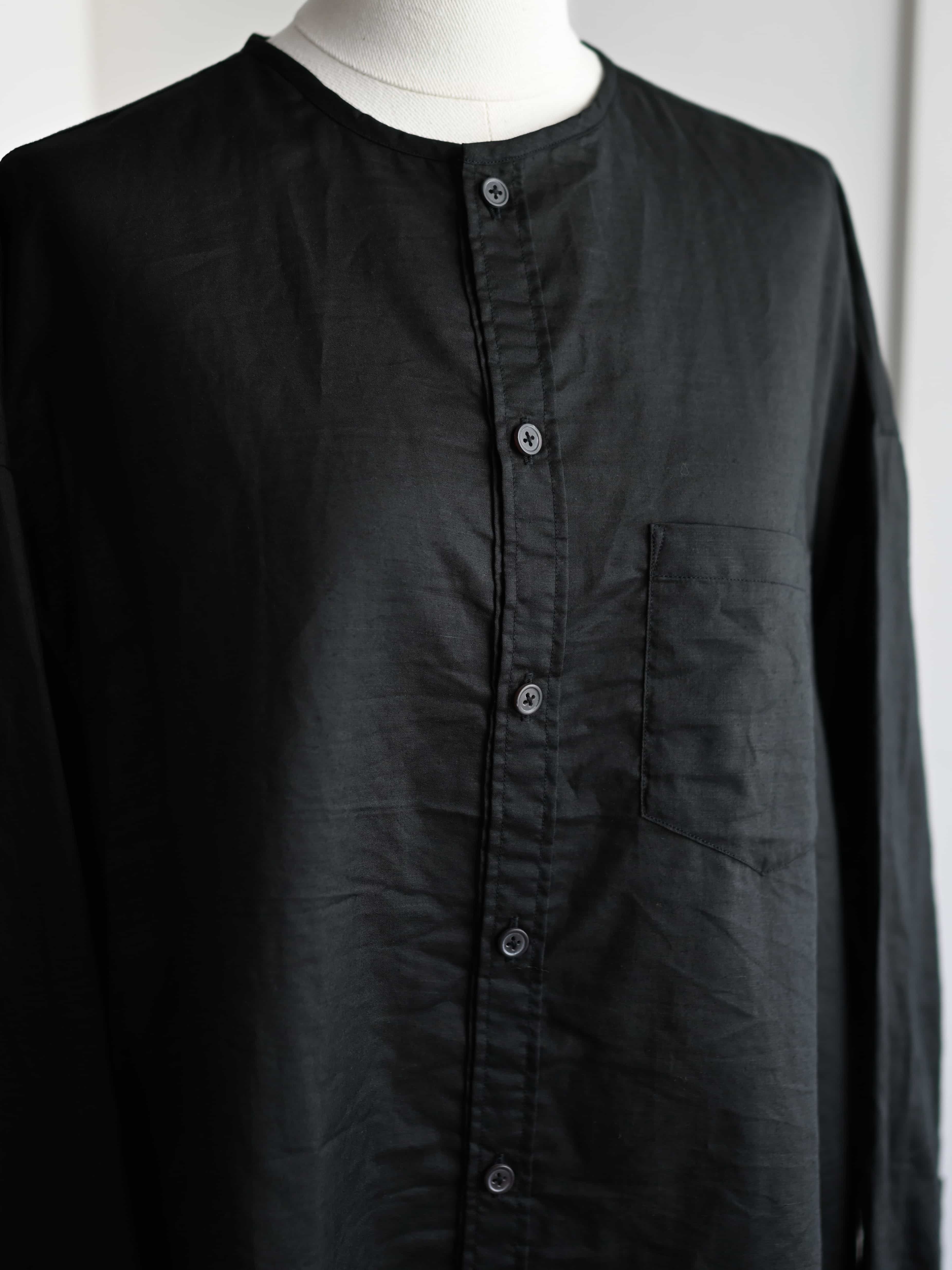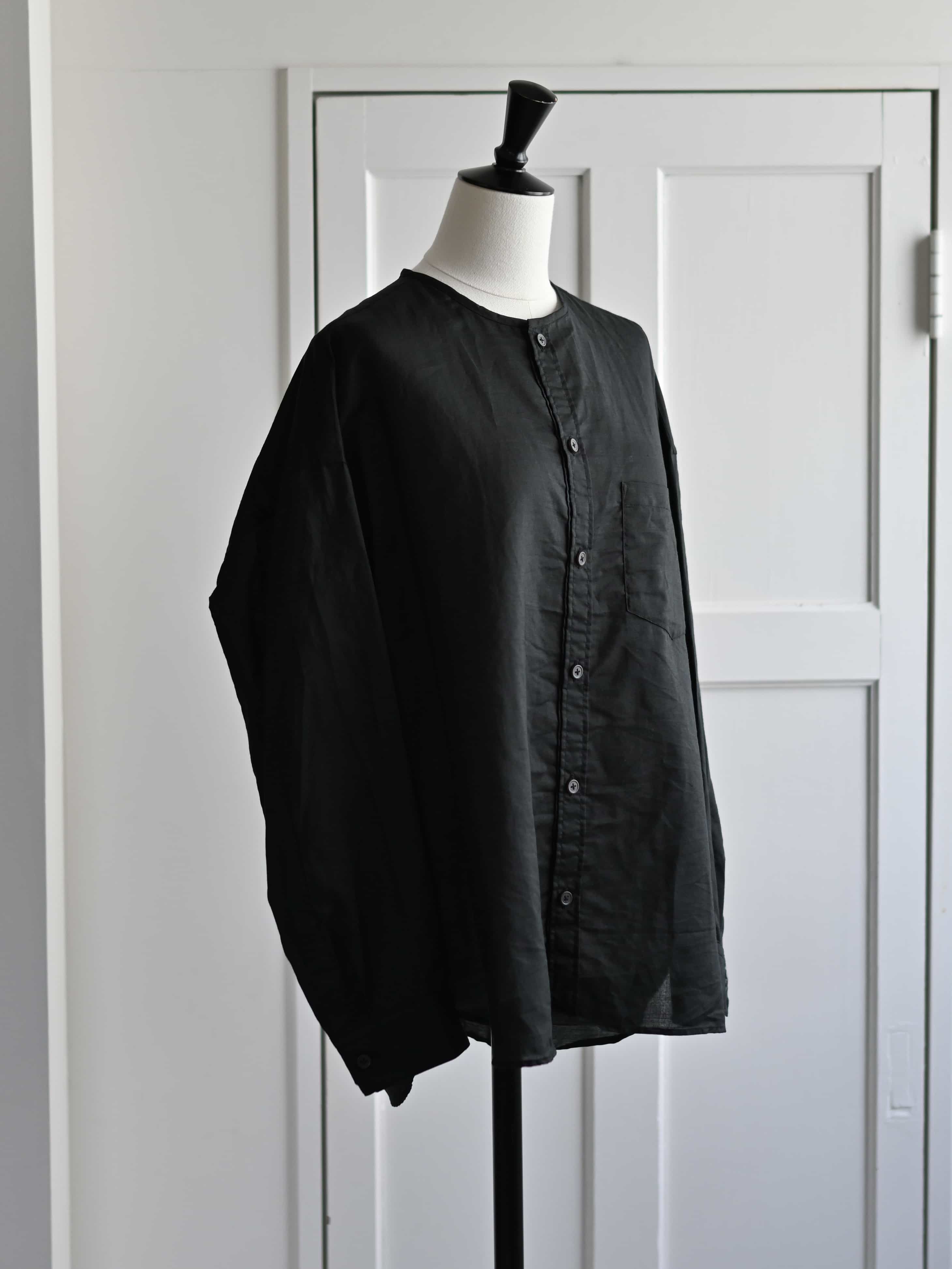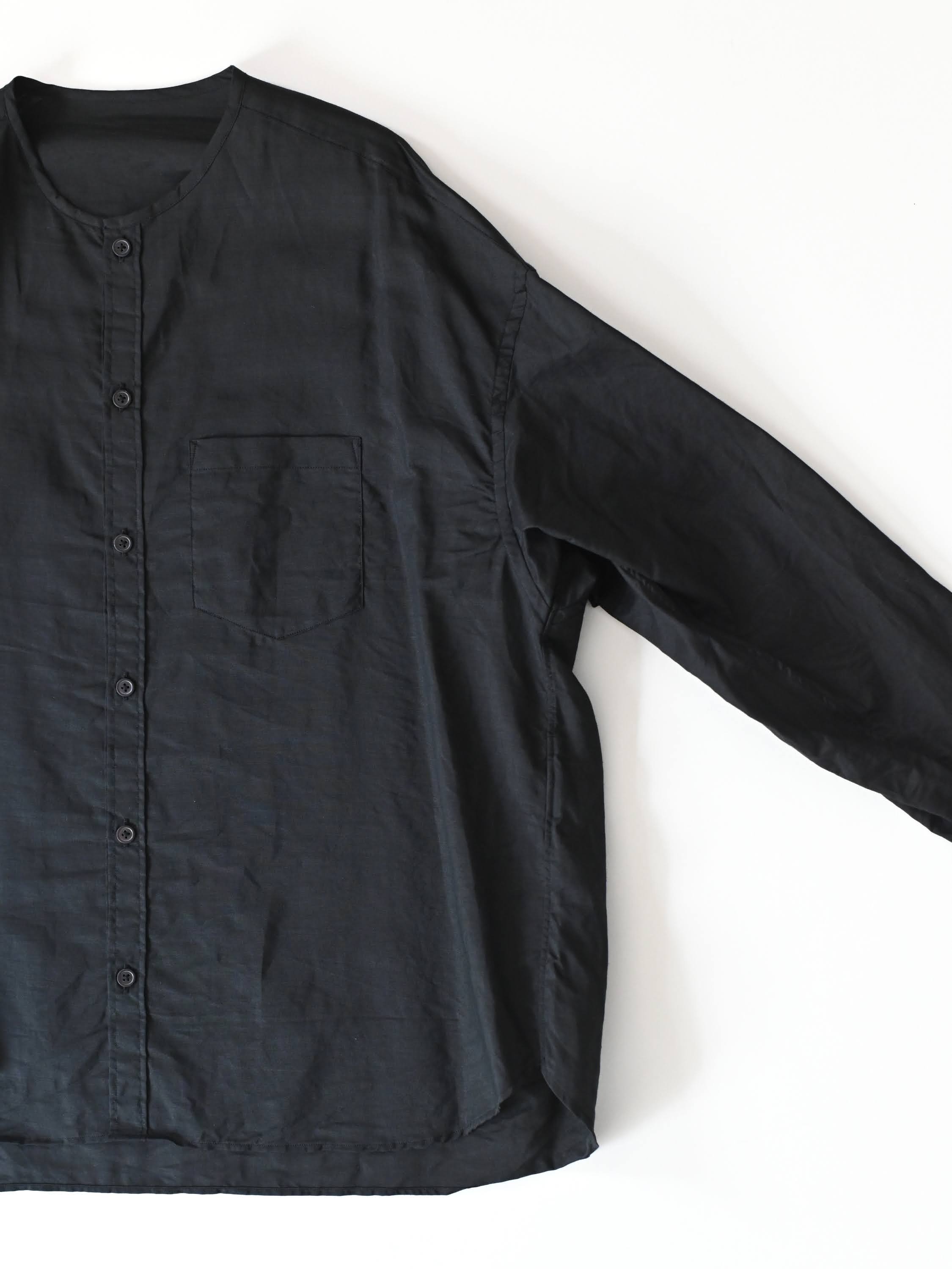 ラミーコットンローン ノーカラーブラウス ブラック