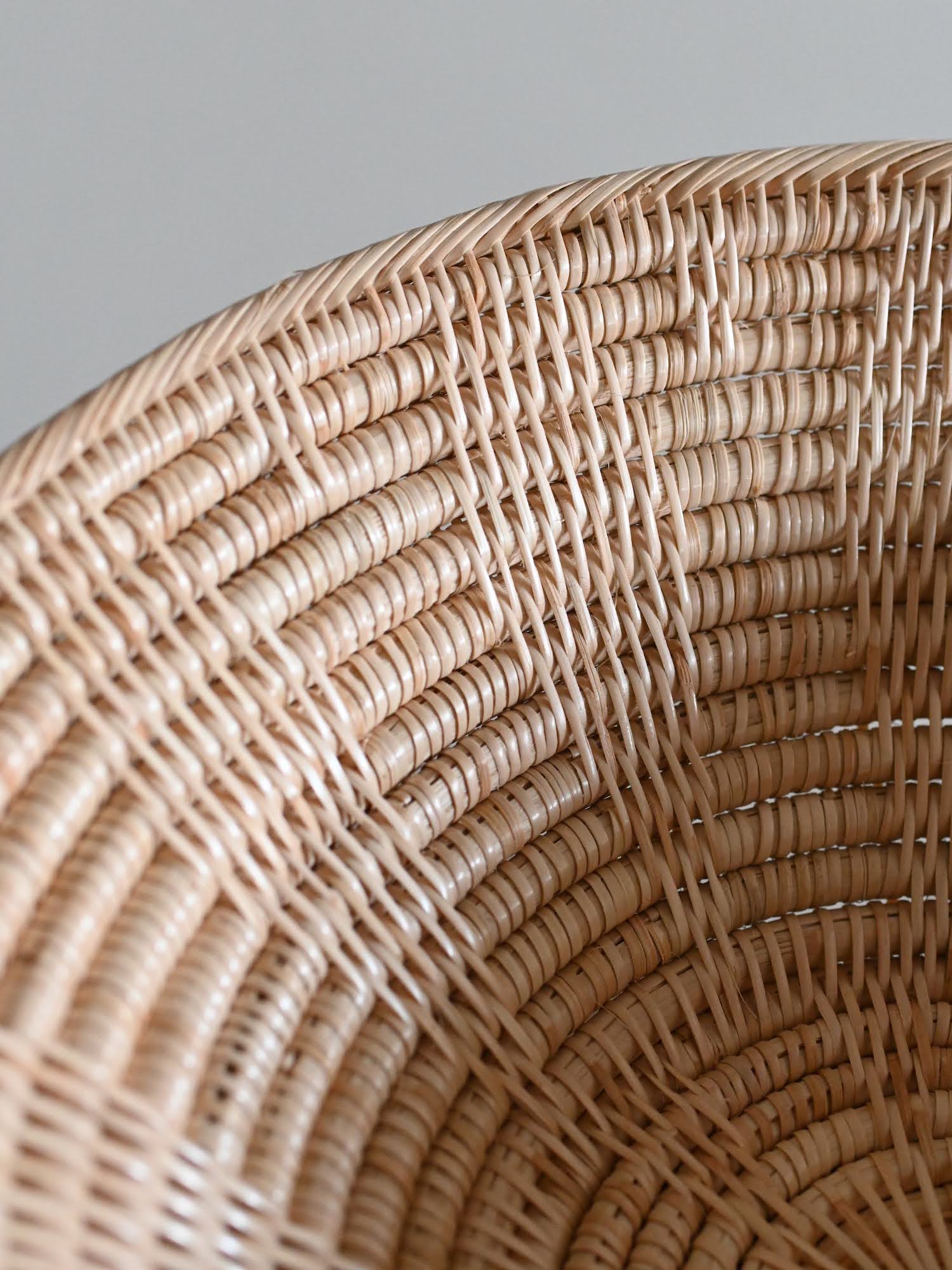 細やかな編み目が美しいラタン(籐)製品は、カンボジアのアンコールワットを抱く都市、シェムリアップ州郊外の自然豊かな村で、ひとつひとつ丁寧に手編みされたものです。この繊細な手工芸の技術は、各家々で代々受け継がれてきたそうです。カンボジアで古くから日用品などに用いられてきた、ルピア種というしなやかで丈夫なラタンの一種で作られています。普段のお手入れではブラシで編み目に沿って掃いたり、乾いた布で拭いてください。水洗いをしていただけますが、極端な湿気はカビなどの原因になりますので、水洗い後はすぐに水気を拭き取り、よく乾燥させてください。