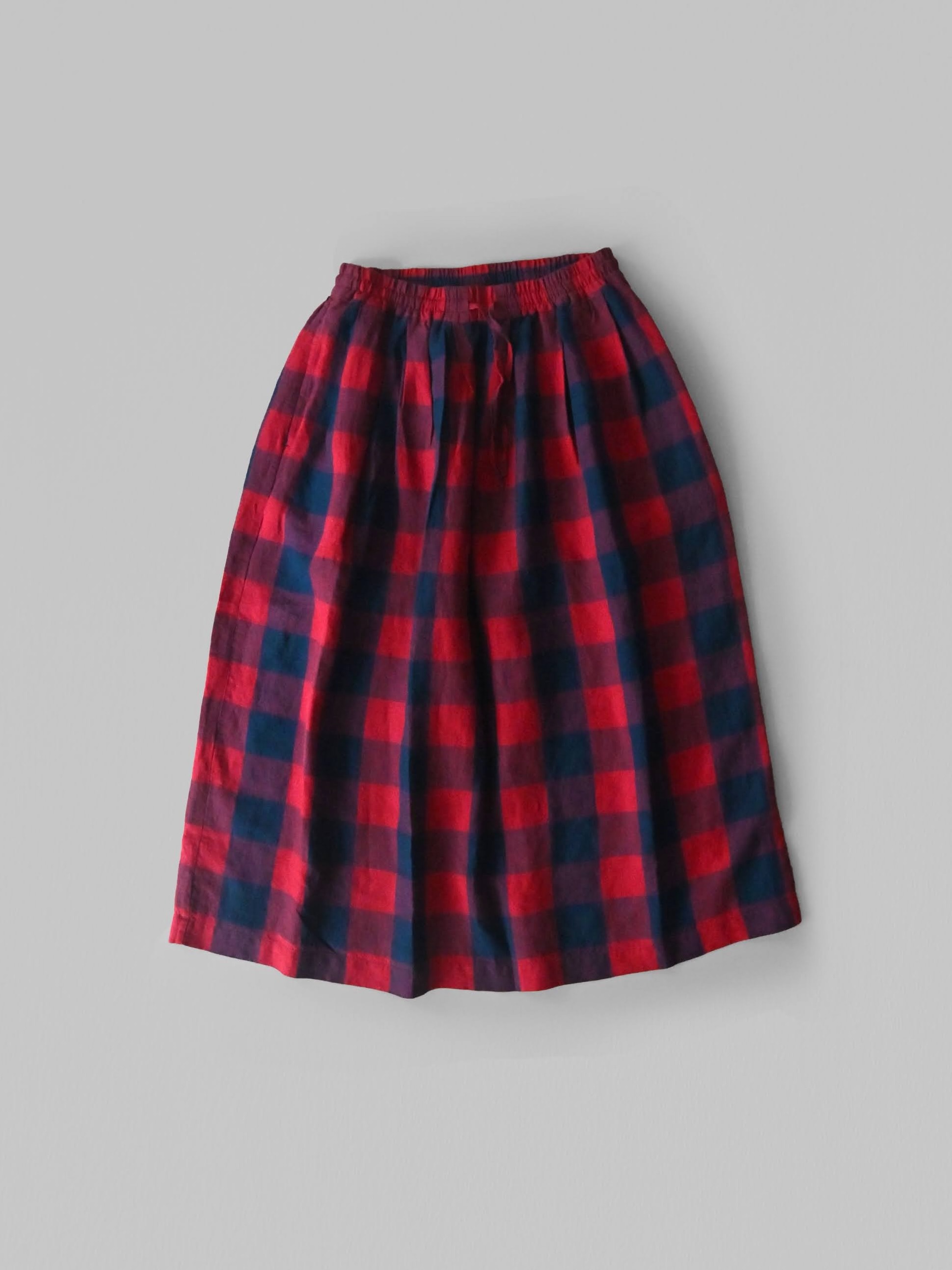 Gingham Check Linen Skirt Raspberry/Blue