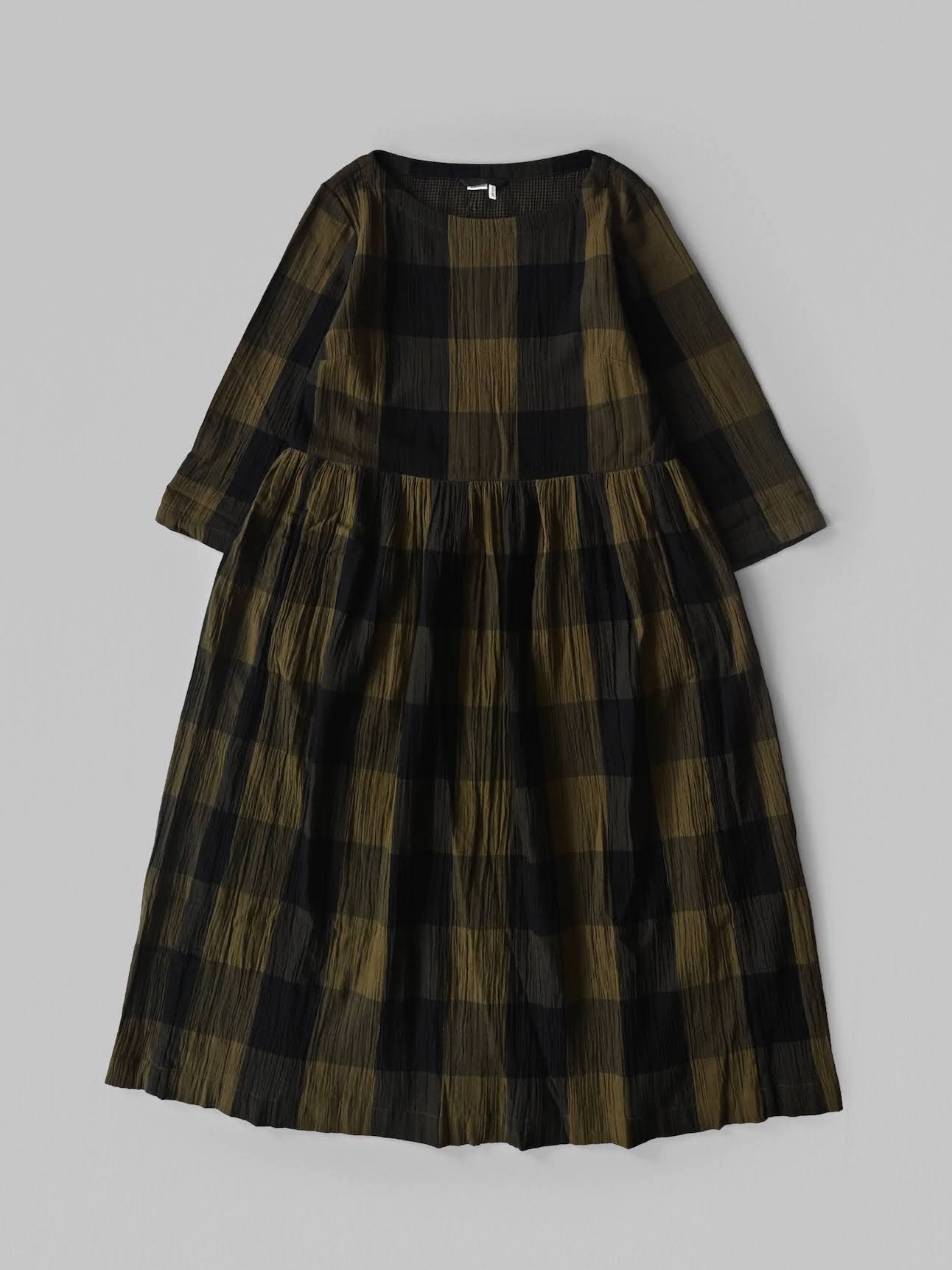 Freya Crinkle Cotton Dress Olive/Black