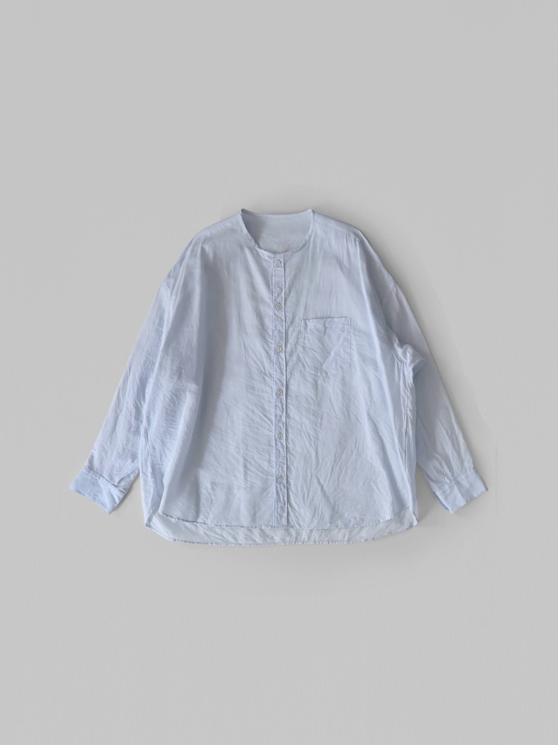 ラミーコットンローン ノーカラーブラウス ライトブルー