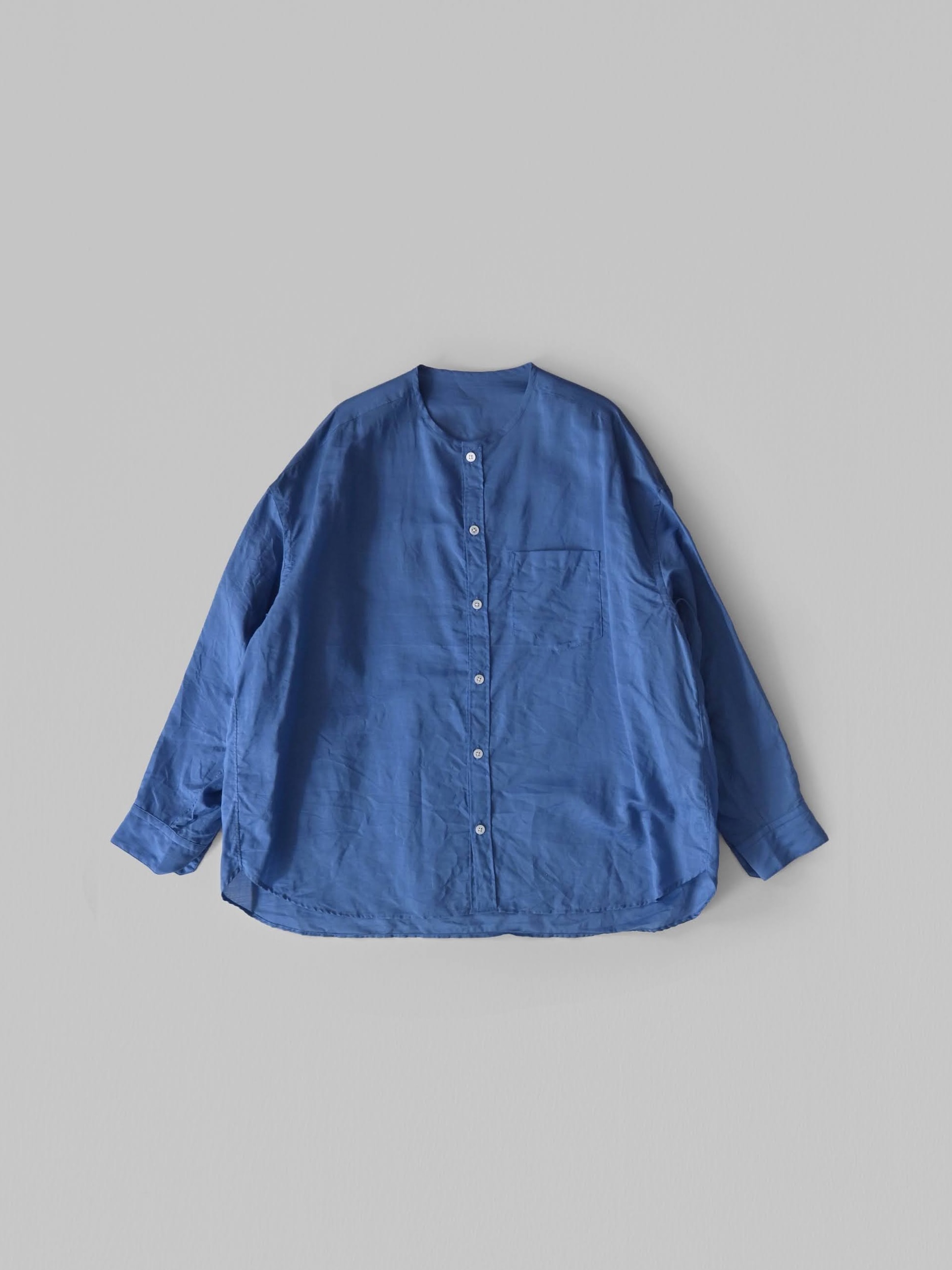 ラミーコットンローン ノーカラーブラウス ブルー