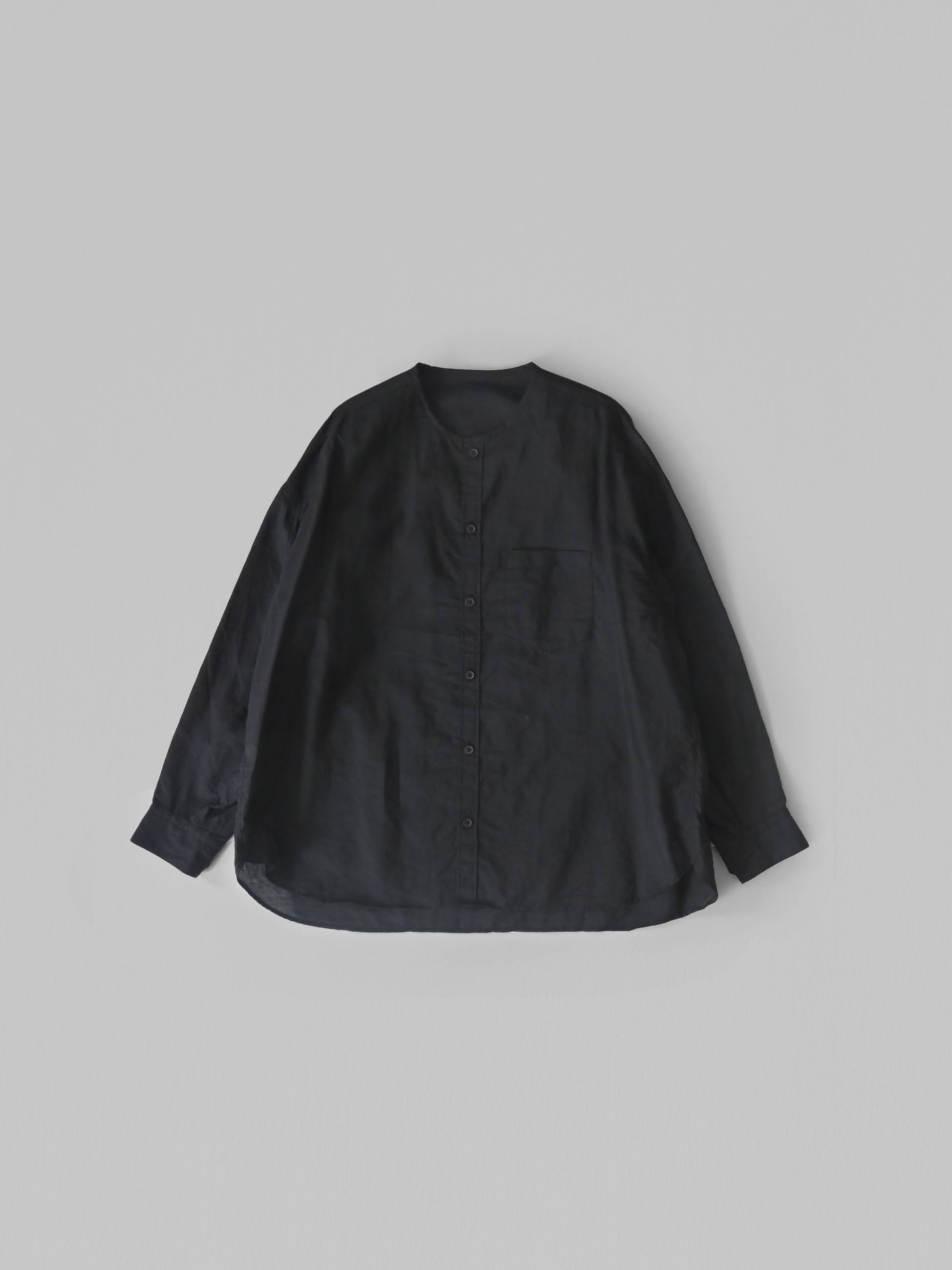 ラミーコットンローン ノーカラーブラウス ブラック
