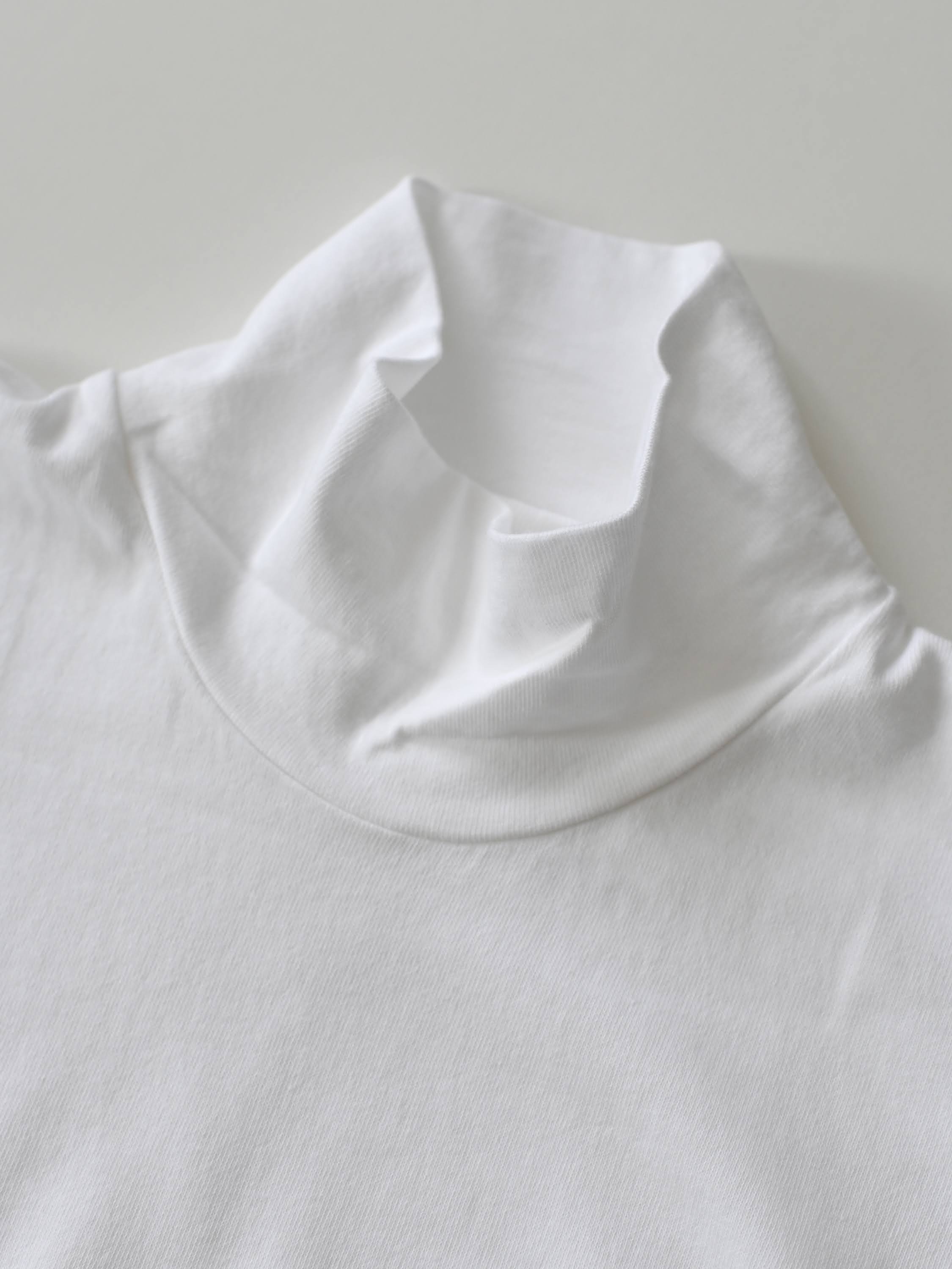 30/1リリース天竺 ハイネック長袖カットソー ワイド ホワイト