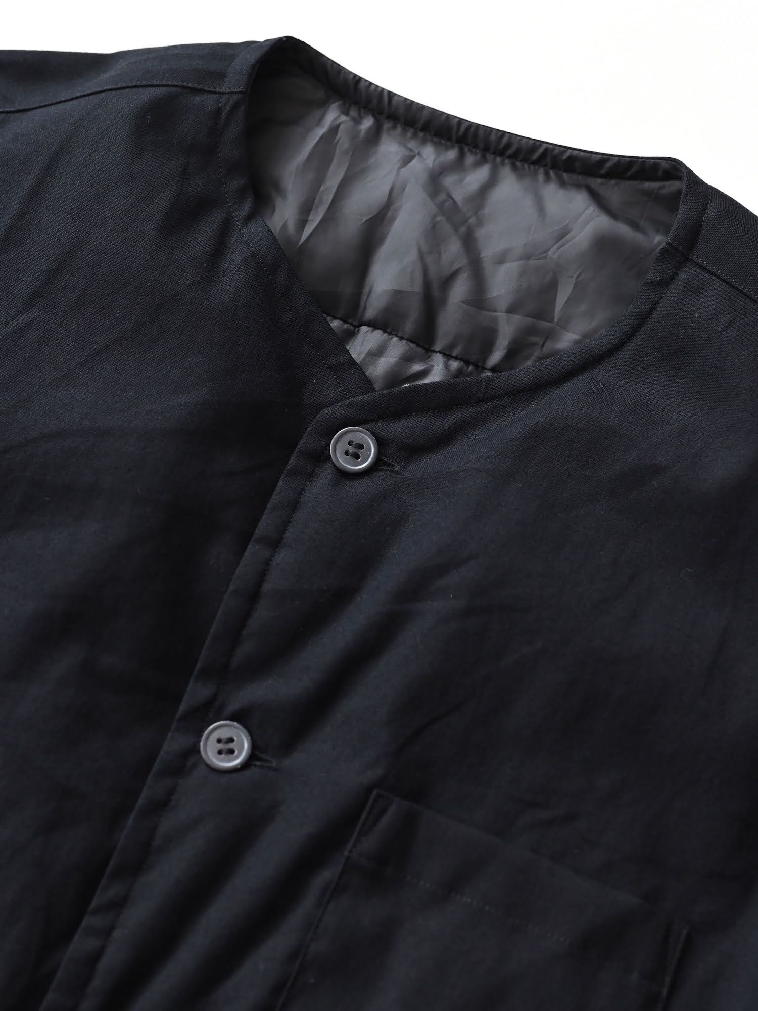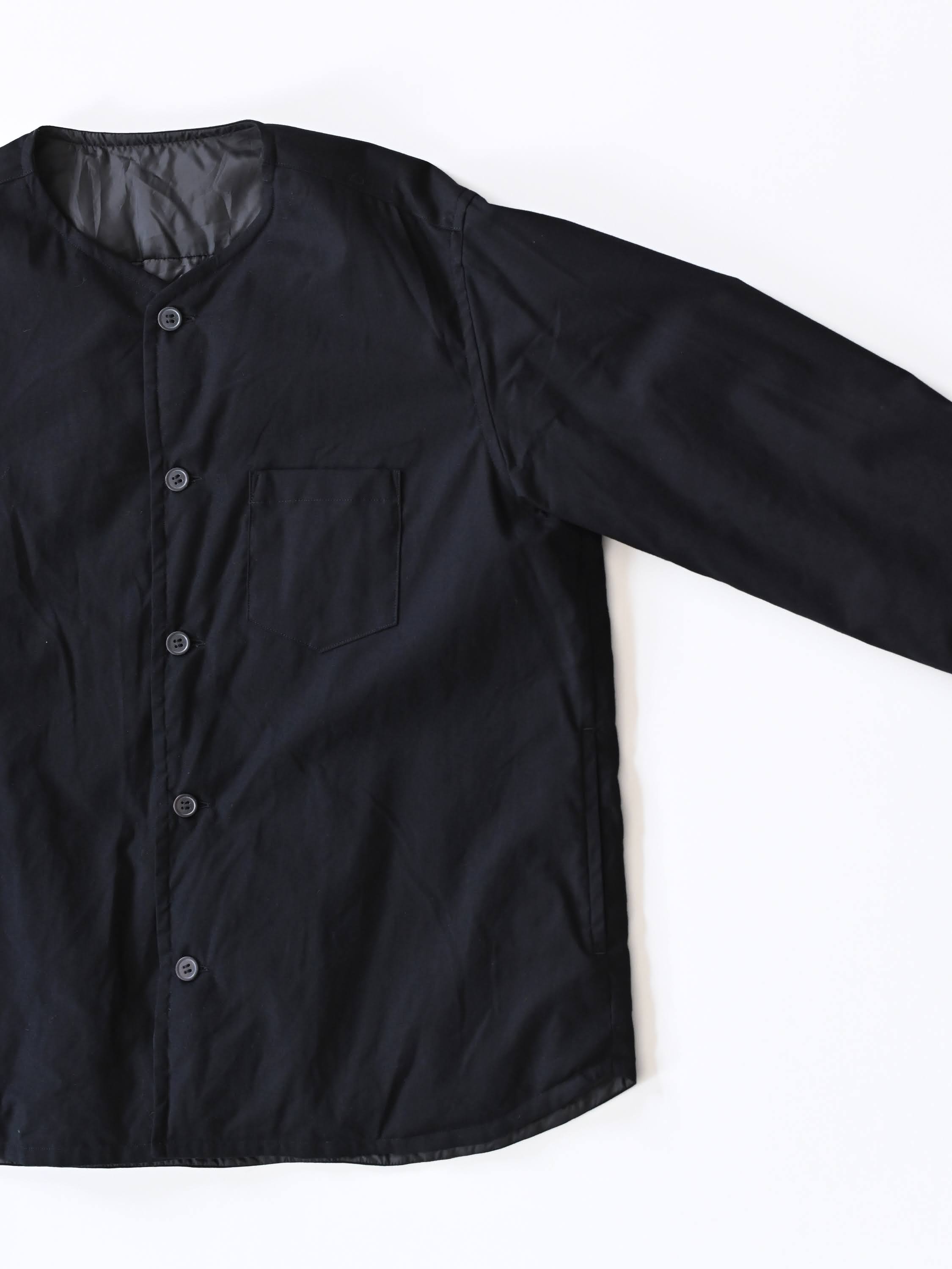ダウンシャツ ノーカラー ブラック