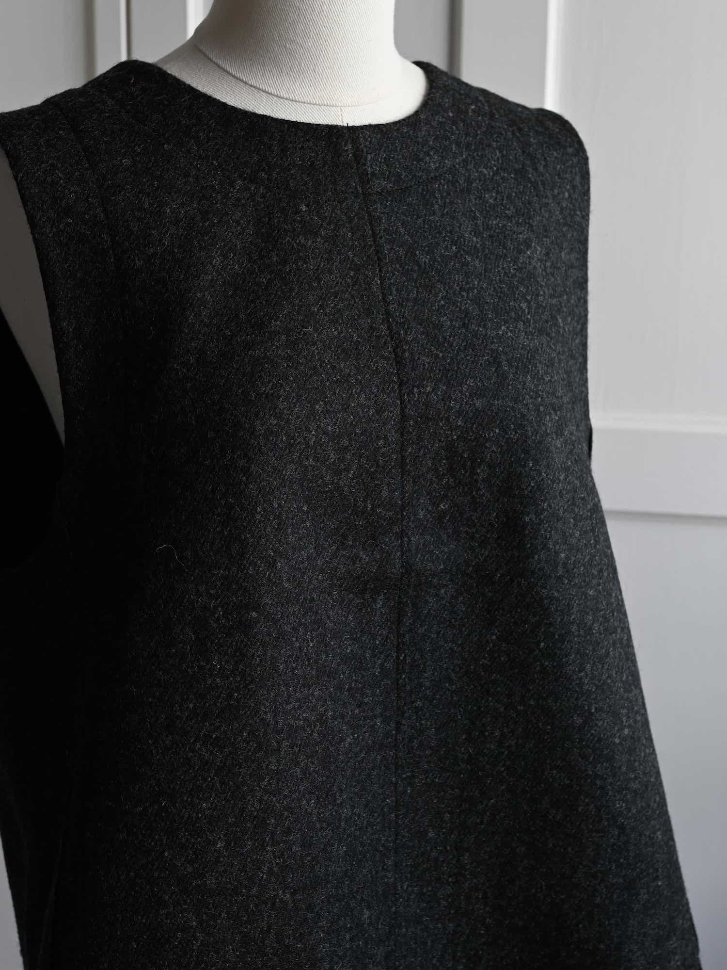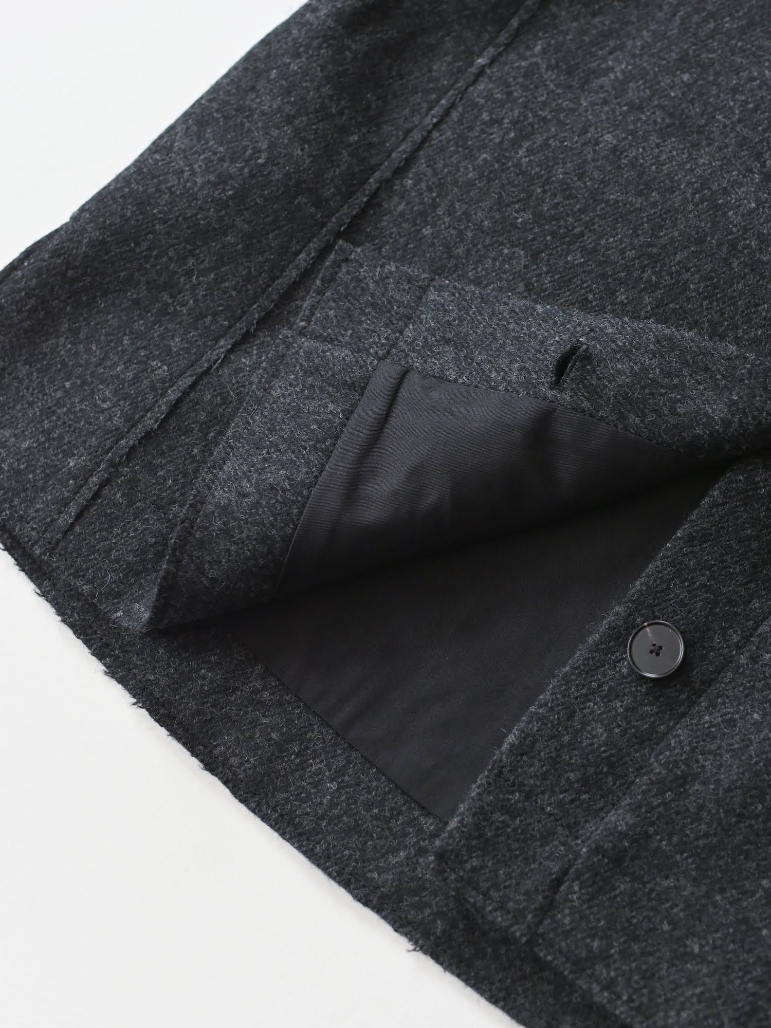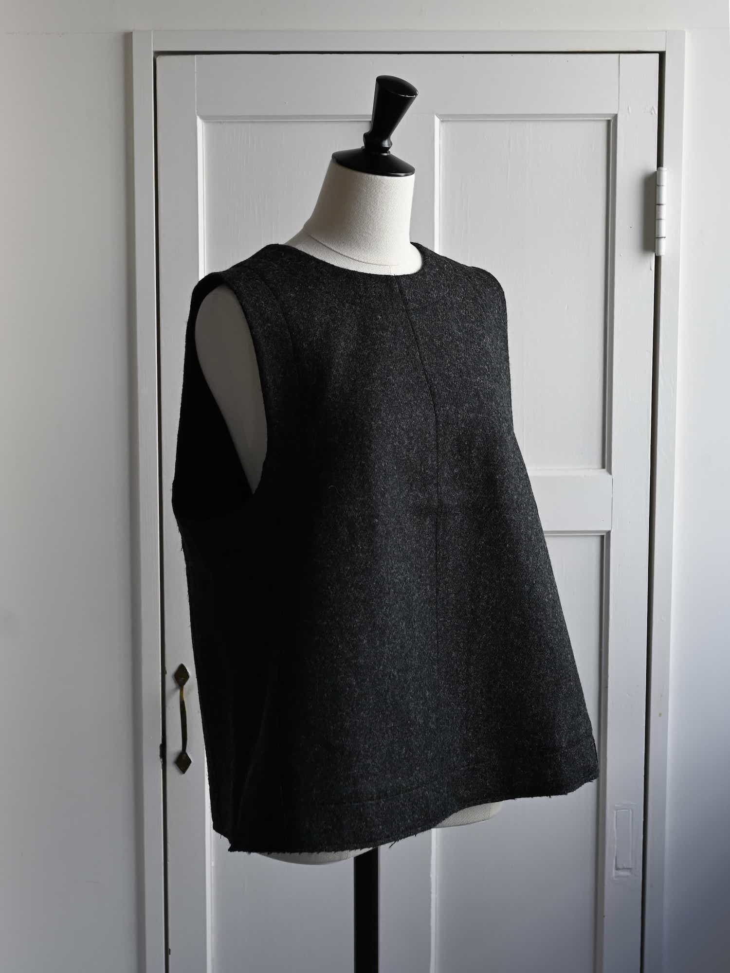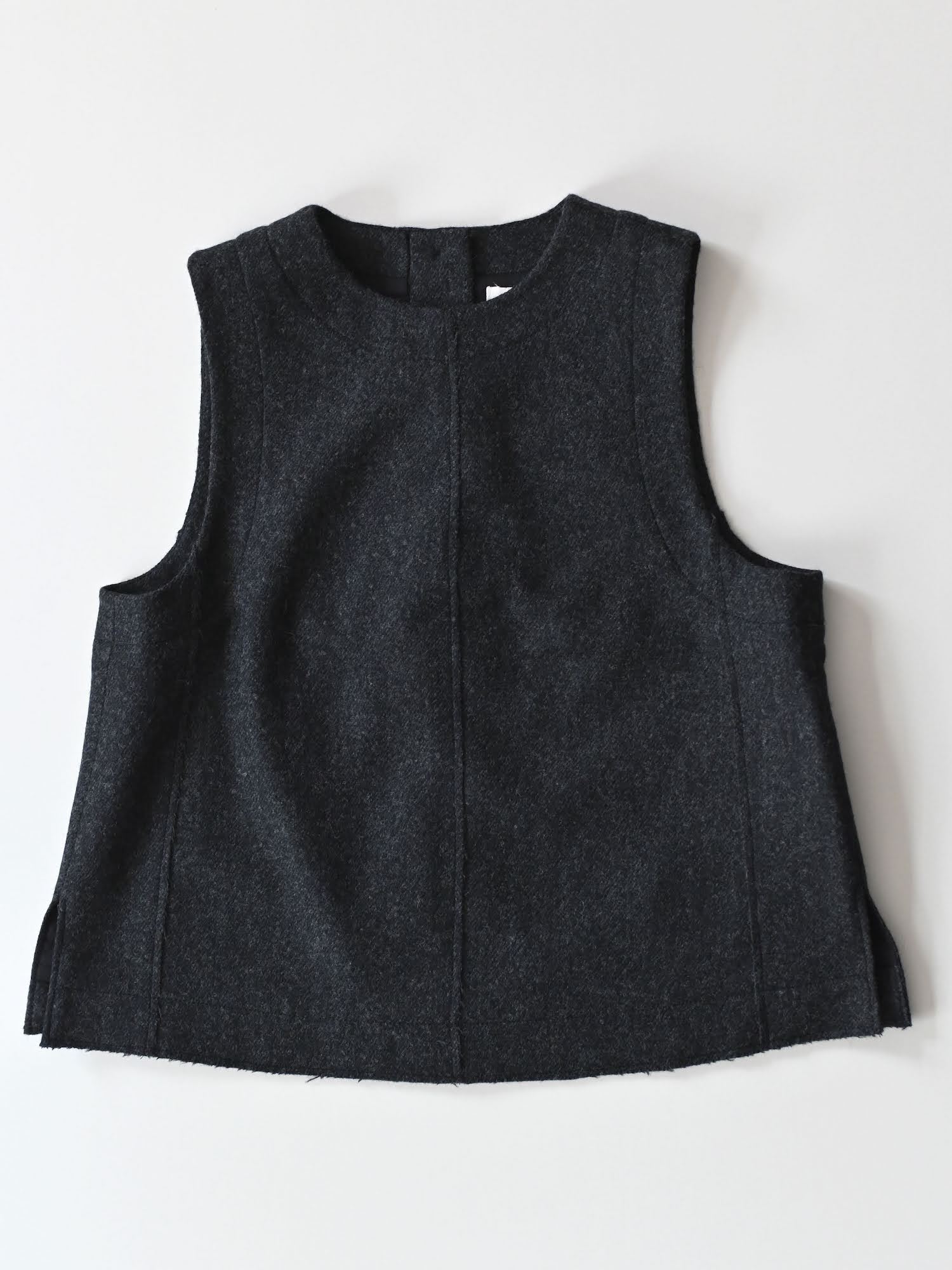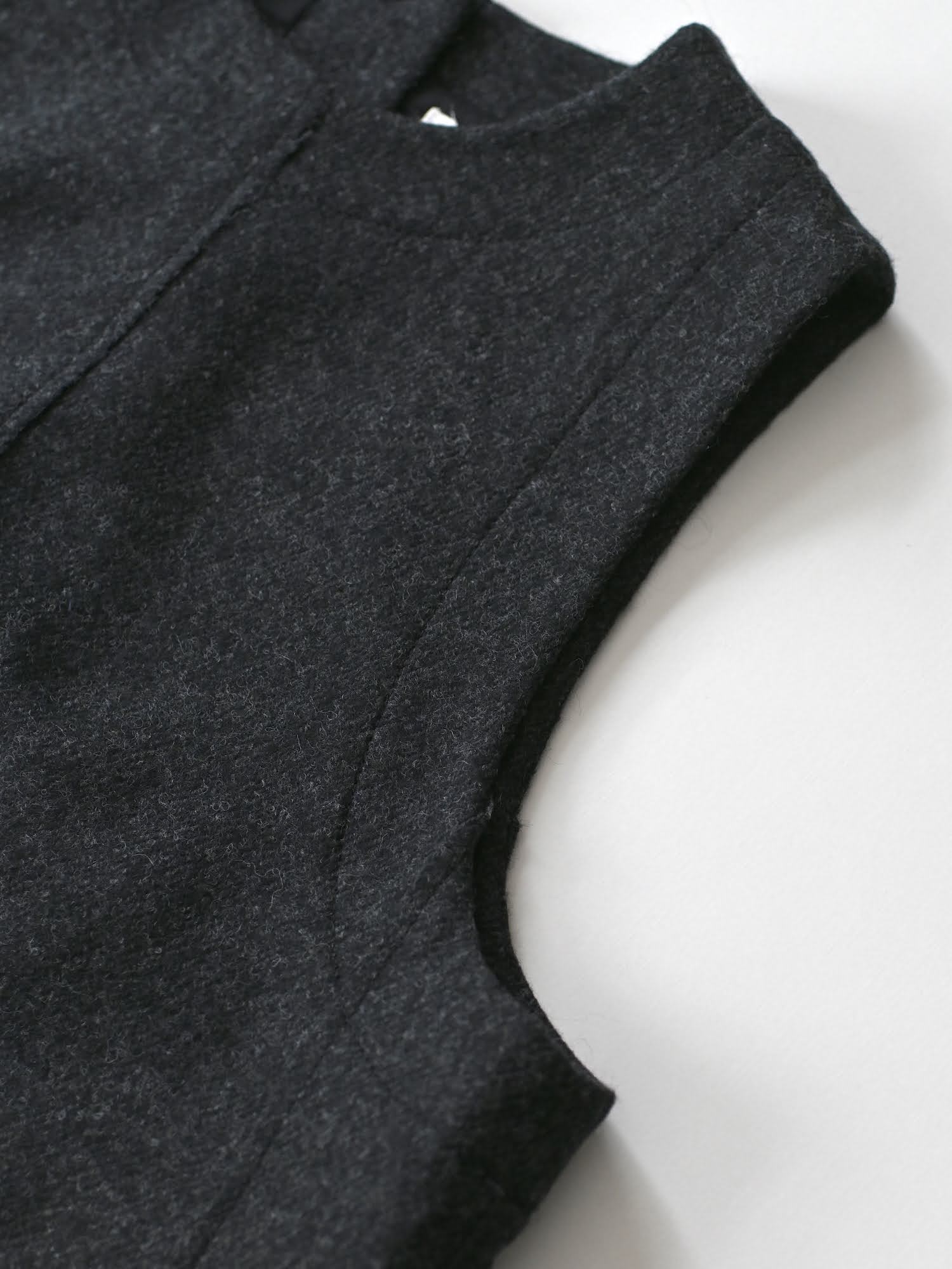 Boiled Wool Twill Button Back Top Charcoal