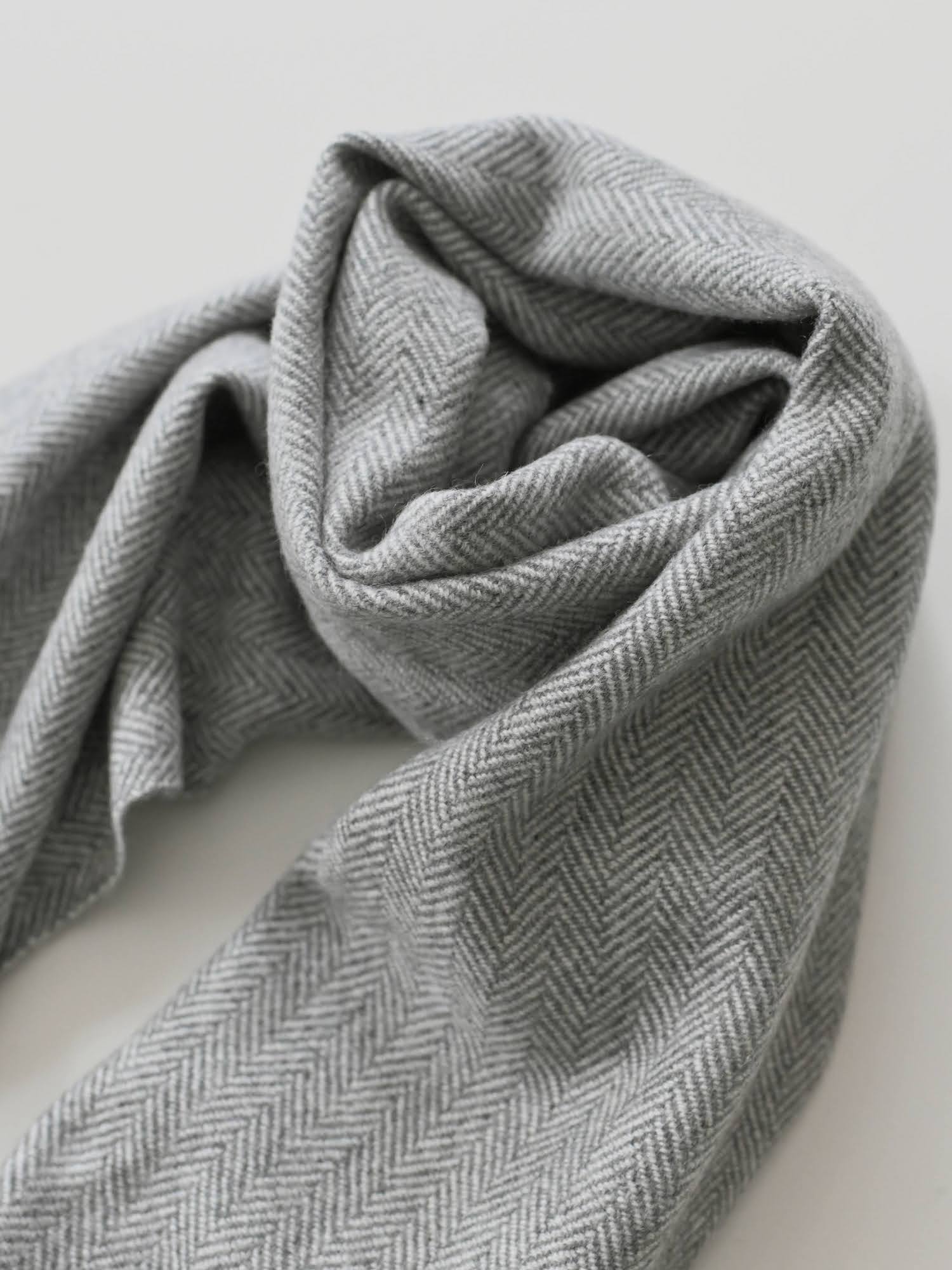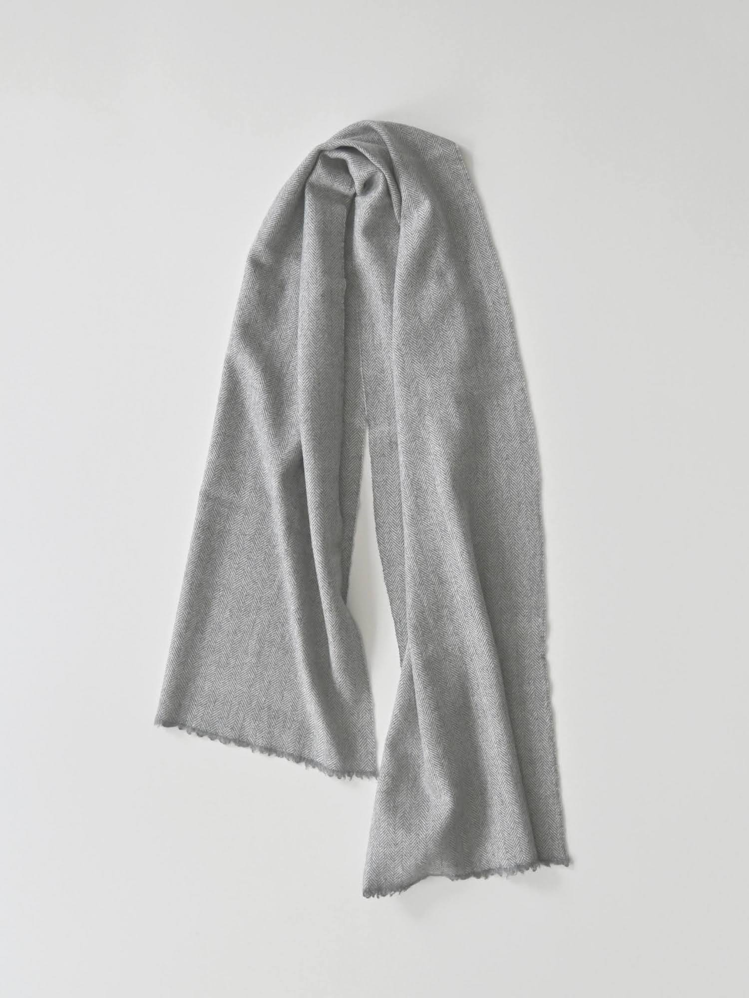 カシミアストール herringbone 灰×白