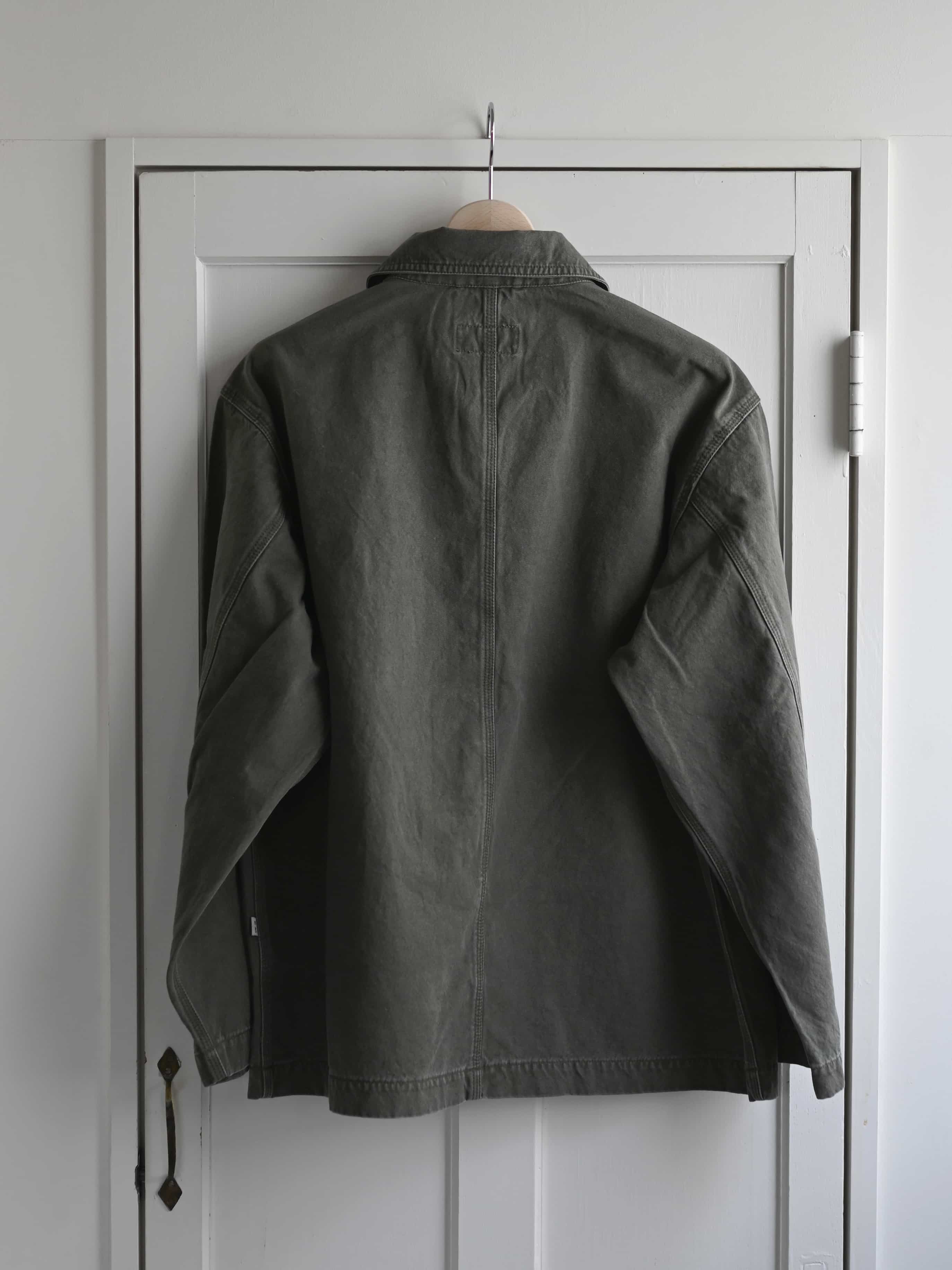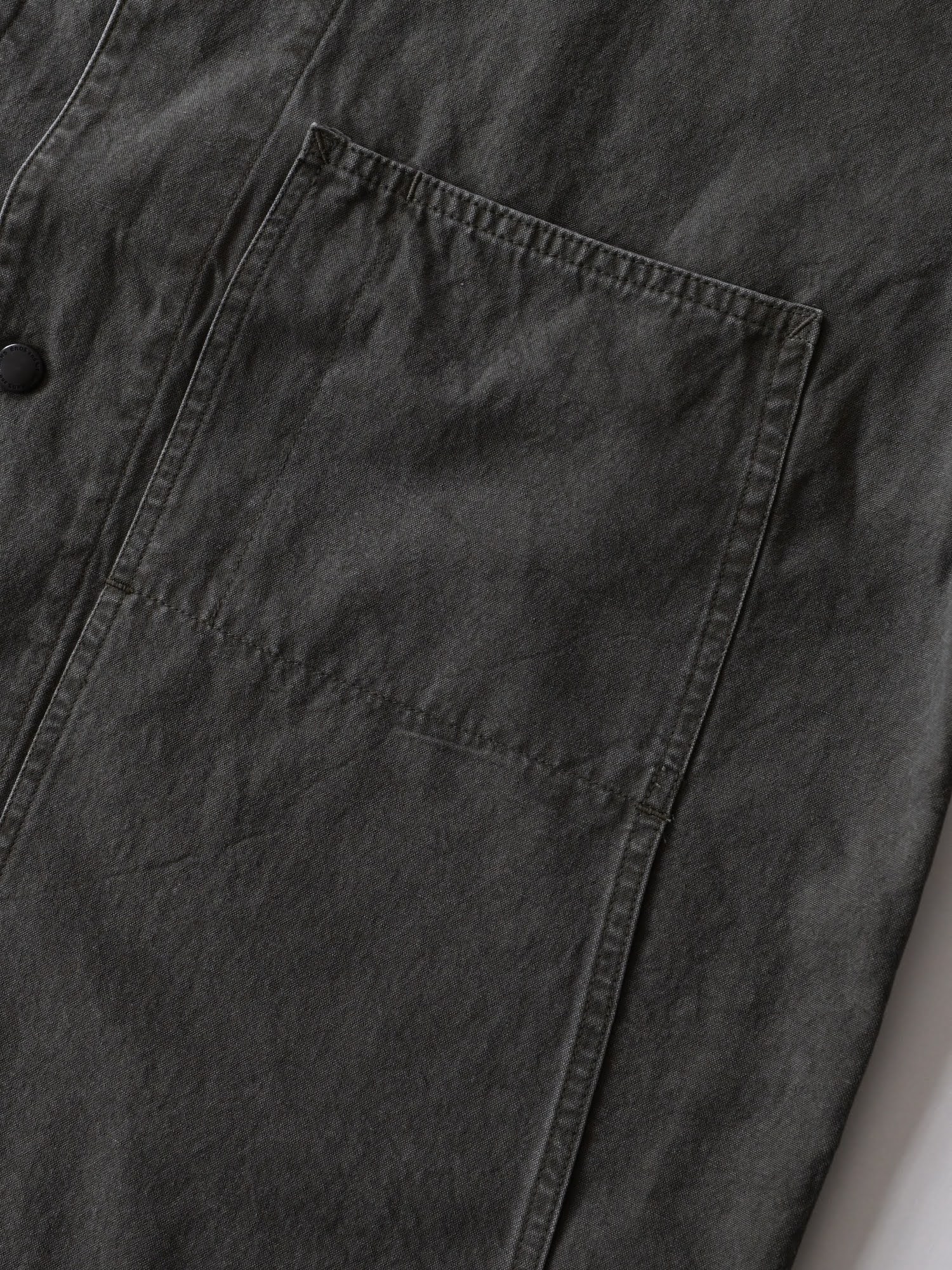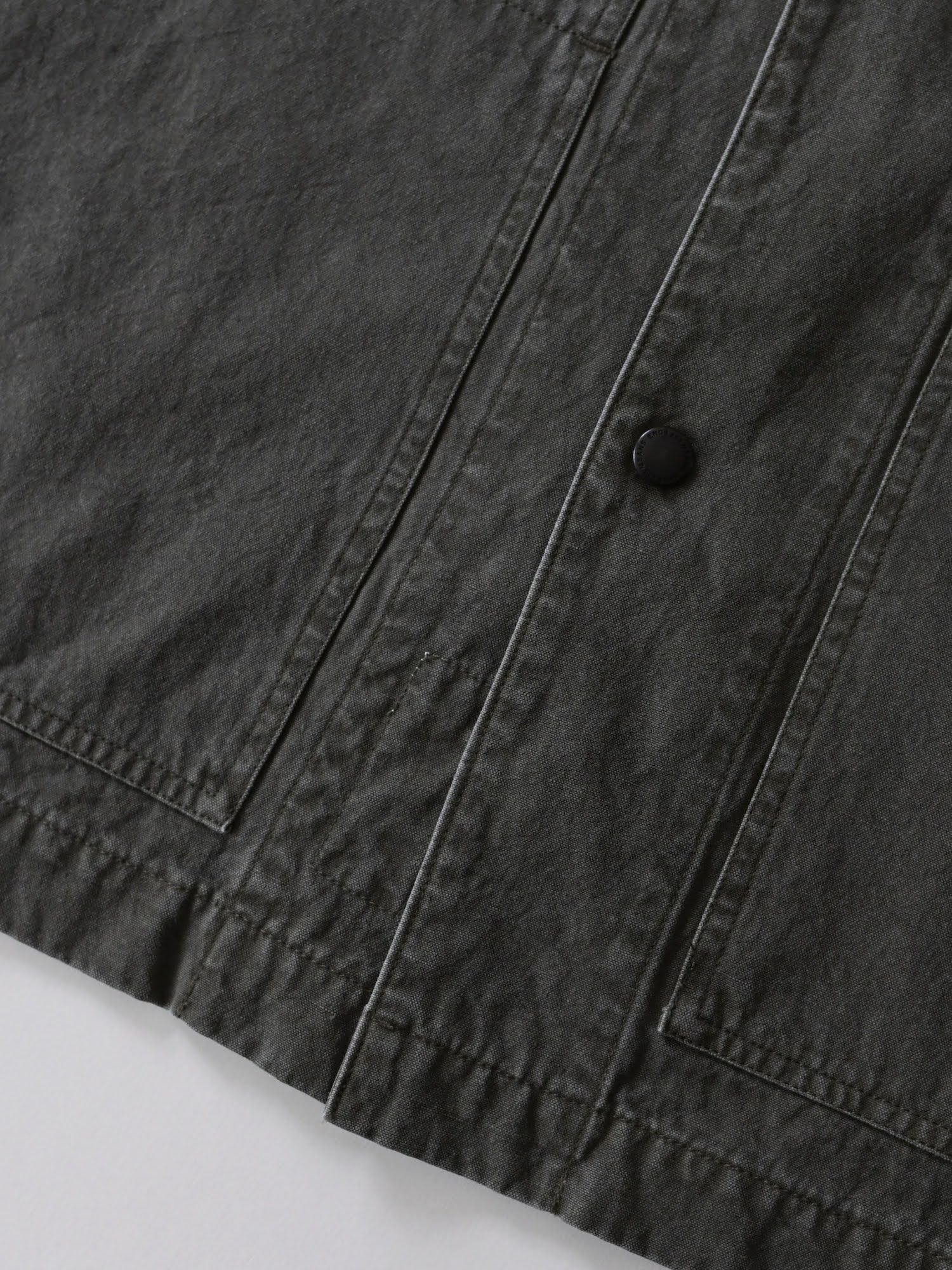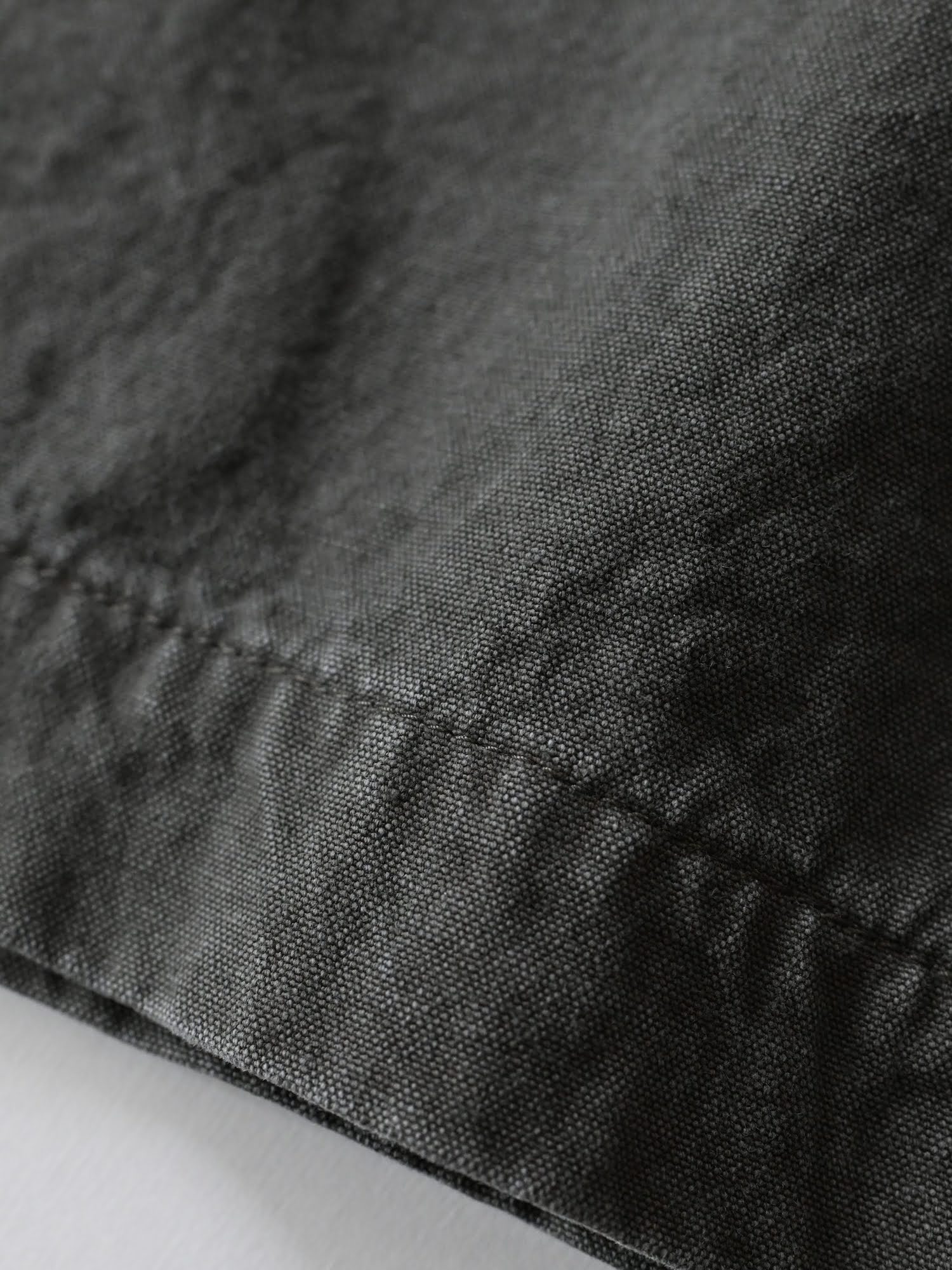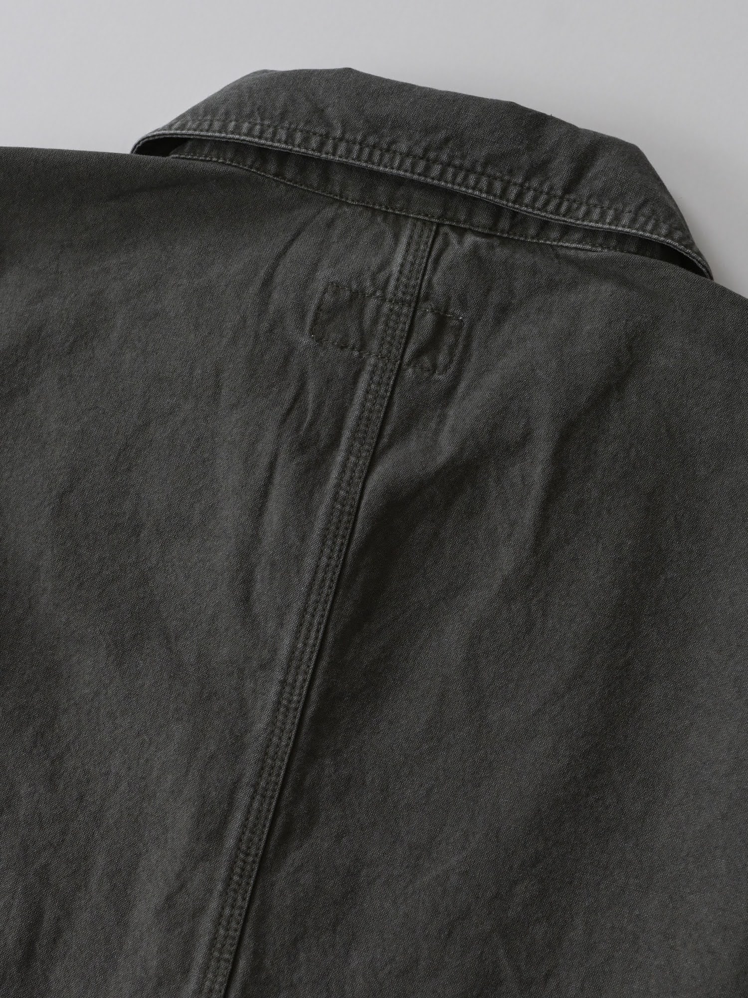 洗い加工を施したコットンリネンのキャンバス生地を使用し、着始めから身体に馴染む柔らかな風合いに仕上げています。