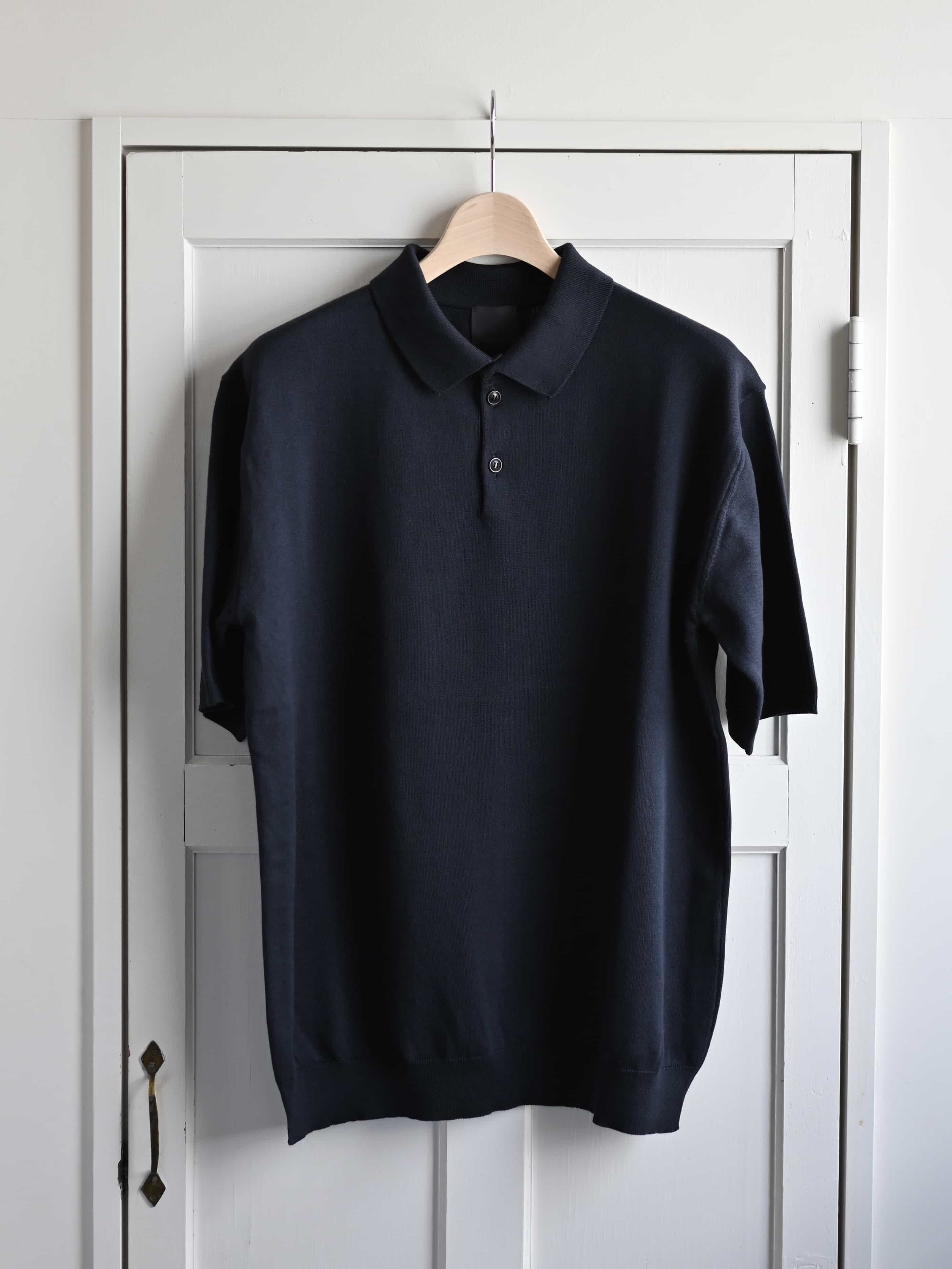 Giza Cotton Knitted Polo Short Sleeve Blue Hole
