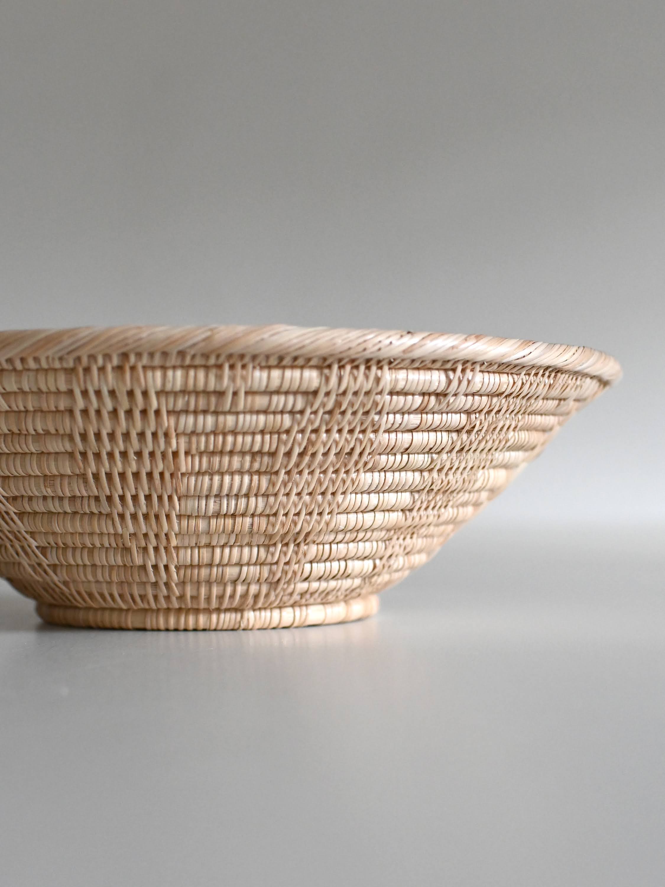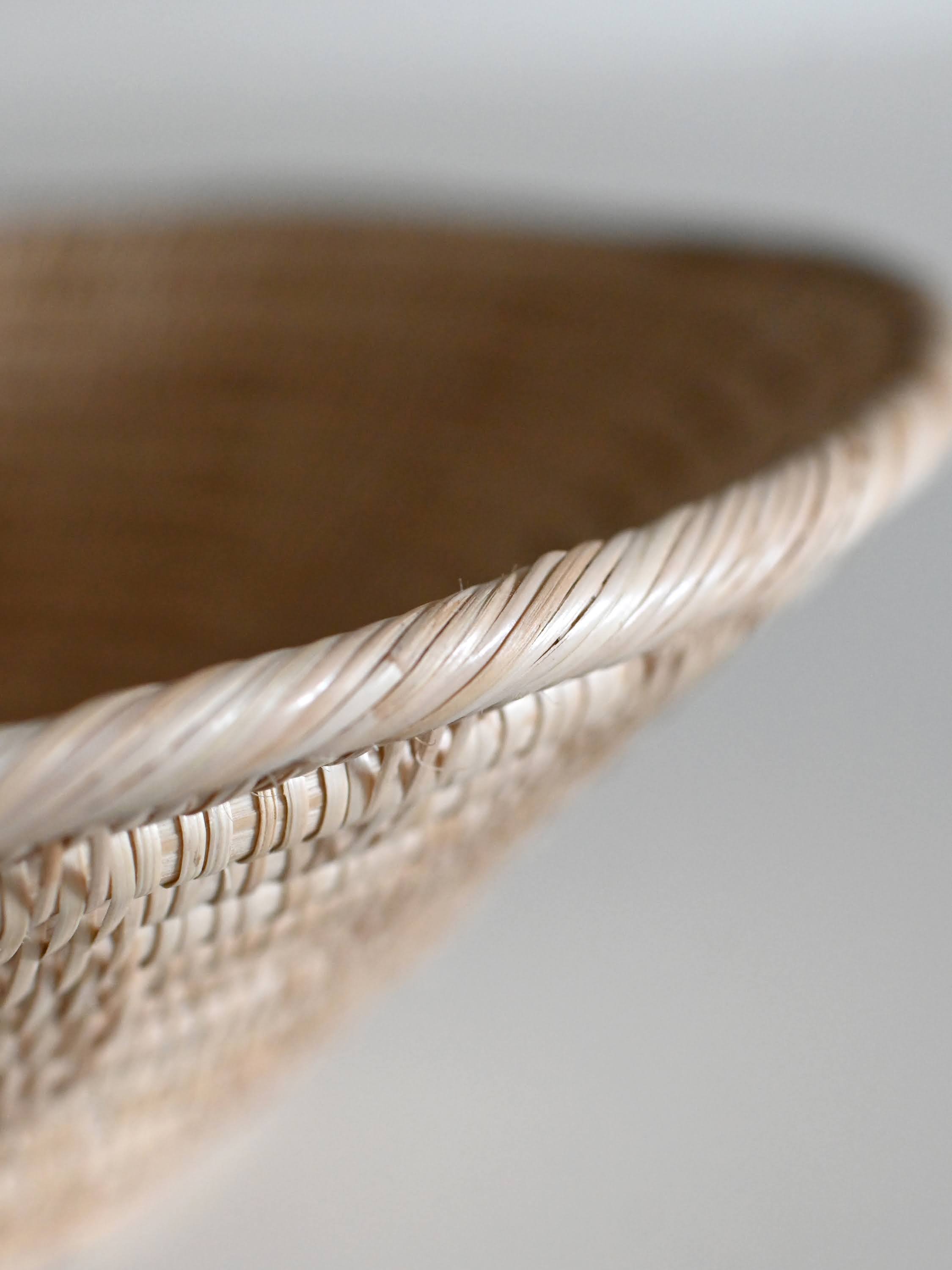 細やかな編み目が美しいラタン(籐)製品は、カンボジアのアンコールワットを抱く都市、シェムリアップ州郊外の自然豊かな村で、ひとつひとつ丁寧に手編みされたものです。この繊細な手工芸の技術は、各家々で代々受け継がれてきたそうです。カンボジアで古くから日用品などに用いられてきた、ルピア種というしなやかで丈夫なラタンの一種で作られています。普段のお手入れではブラシで編み目に沿って掃いたり、乾いた布で拭いてください。水洗いをしていただけますが、極端な湿気はカビなどの原因になりますので、水洗い後はすぐに水気を拭き取り、よく乾燥させてください。