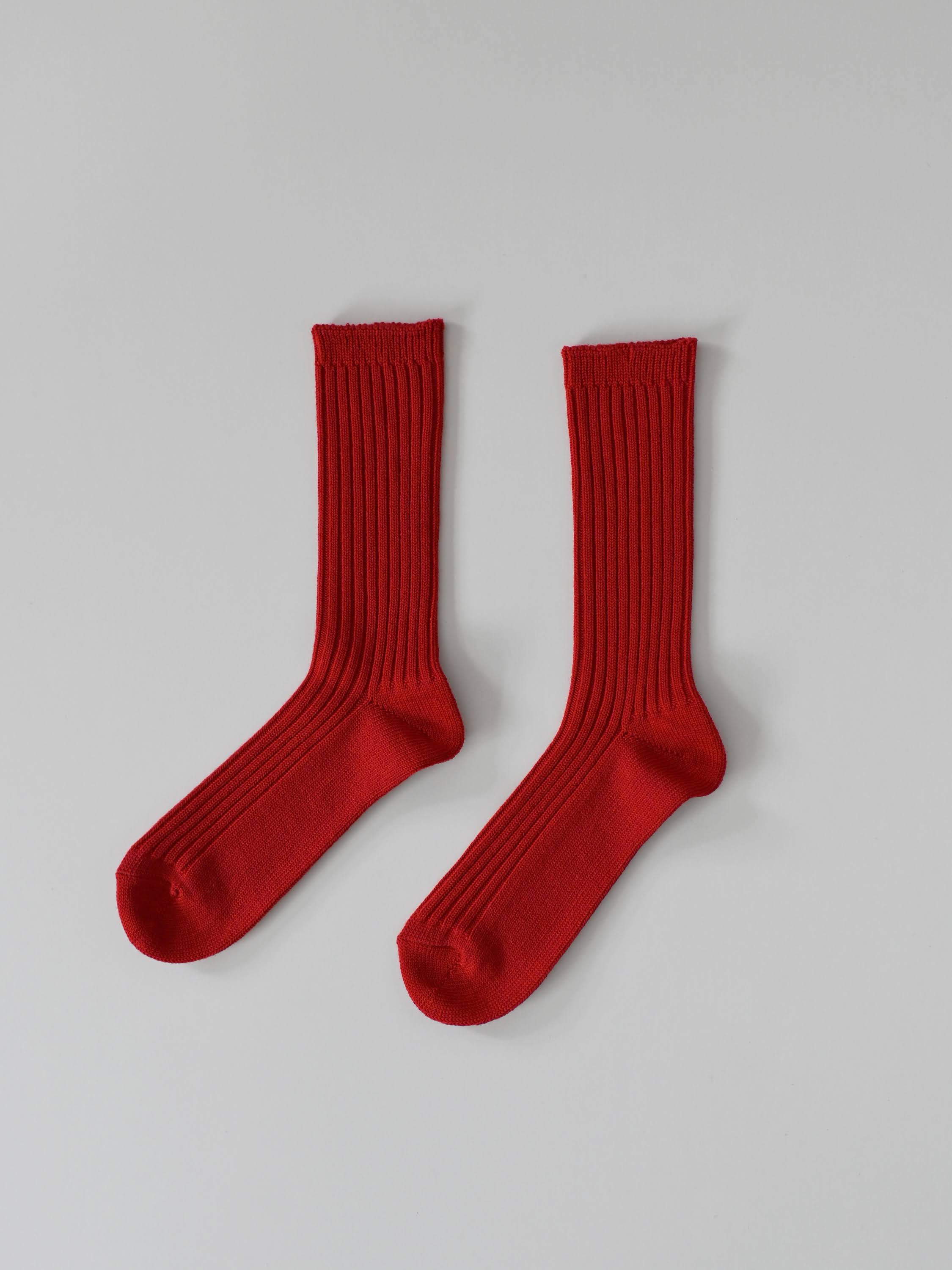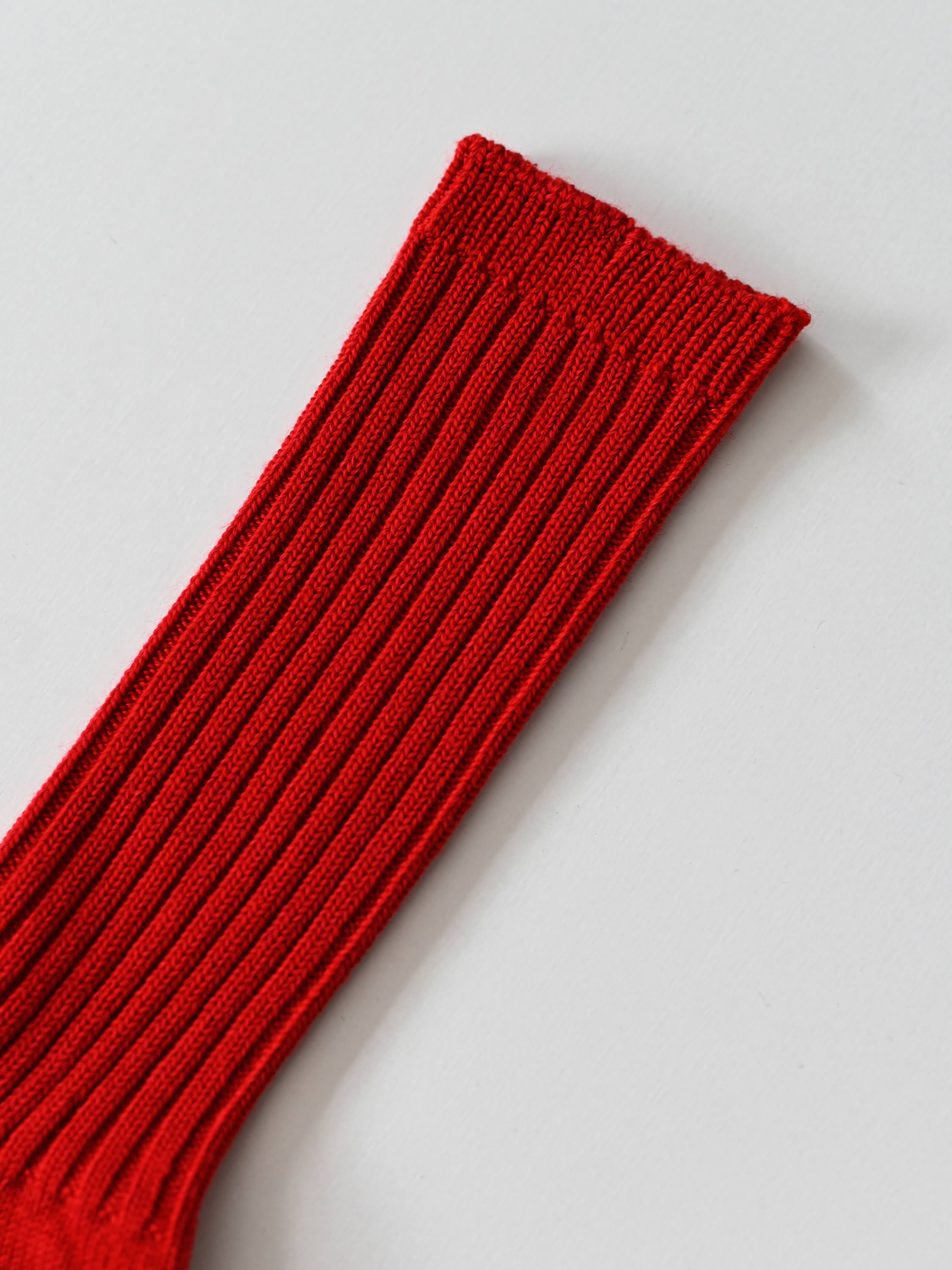 WOOL COTTON RIB SOCKS RED