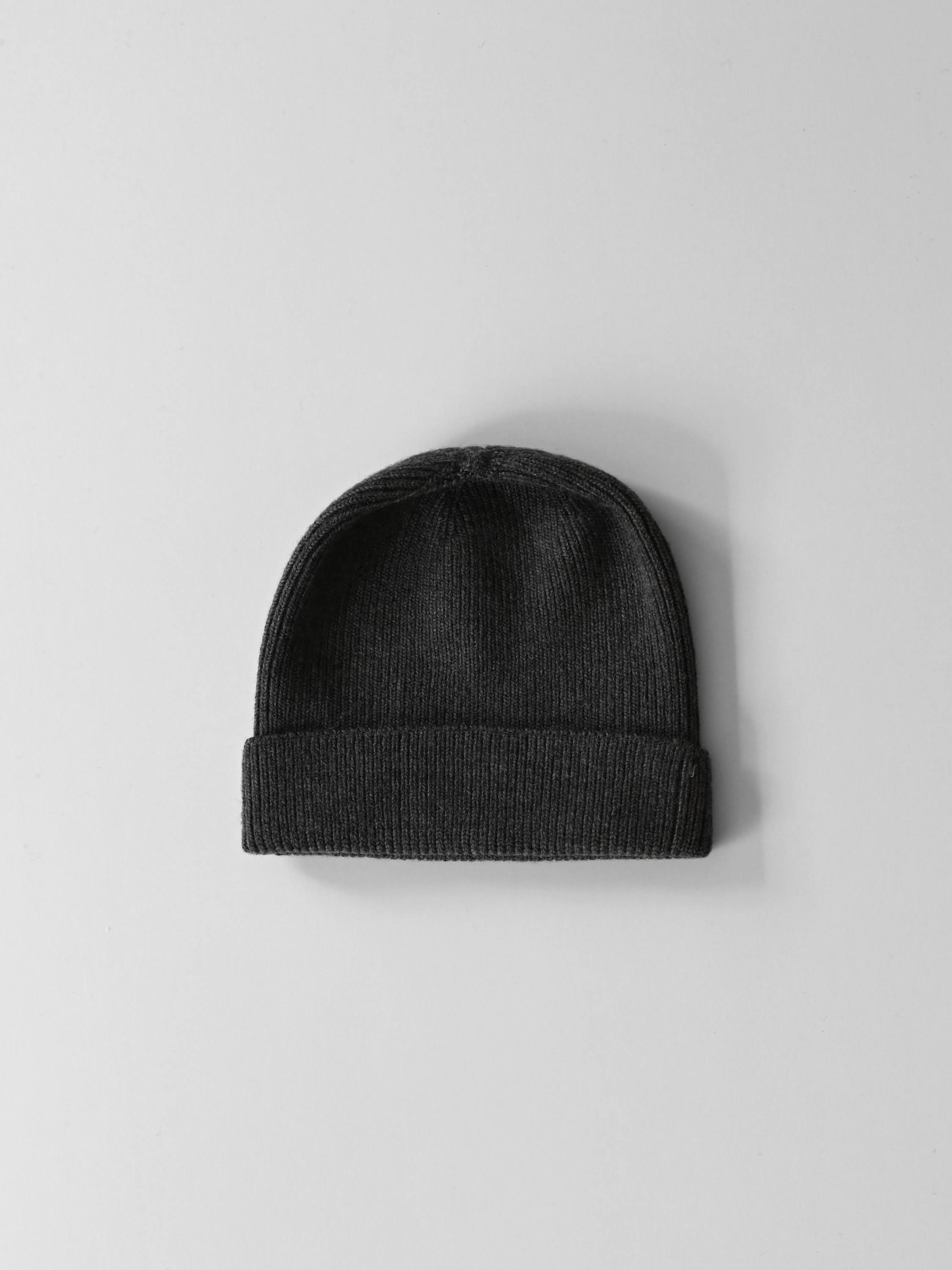 Roll Up Wool Knit Cap mix charcoal brown