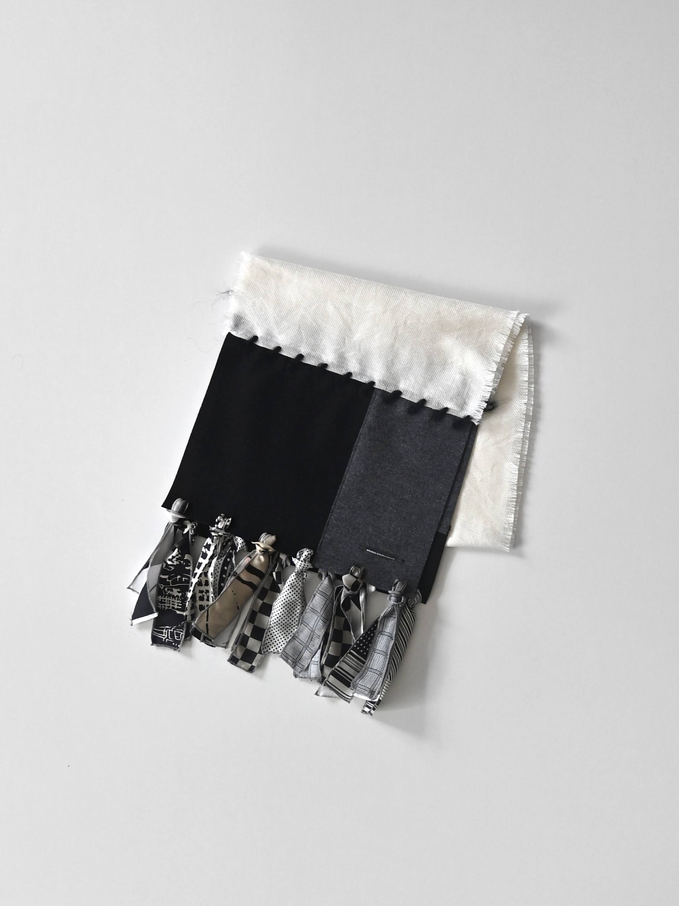 カシミアストール herringbone 灰×白