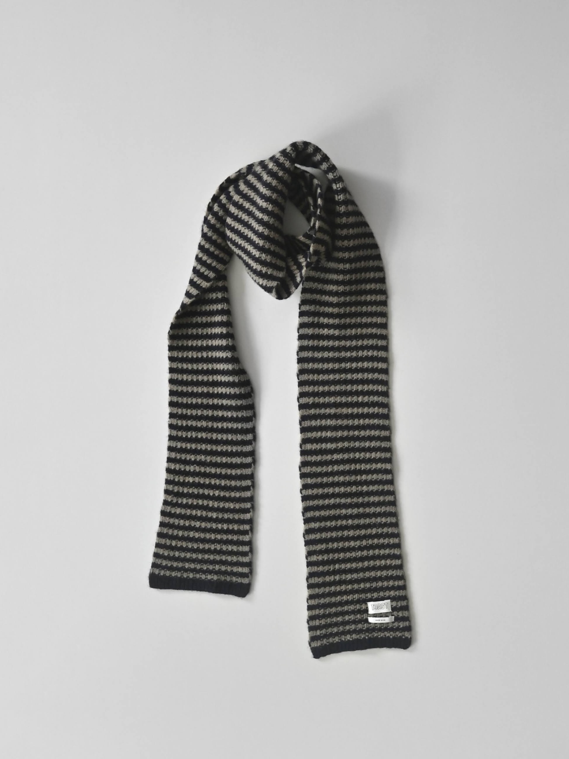 Micro Cable Striped Wool Scarf Navy/Putty